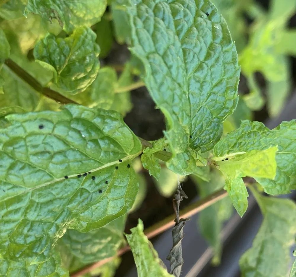 这两种夜蛾会直接在薄荷的叶片上产卵,它们的幼虫会慢慢孵化,之后就会啃食薄荷的叶子,如果你发现薄荷的叶子不断被啃食,叶面上出现很多孔洞,那就是有夜蛾的幼虫在祸害。
