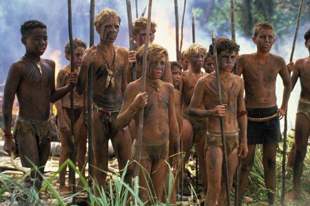 讲的是一群英国孩童在二战中被意外投放到一个荒岛,起初孩子们决定模仿大人们,在荒岛上建立秩序,他们推选领导人,决定轮流看火生烟,互相帮助搭起草棚。