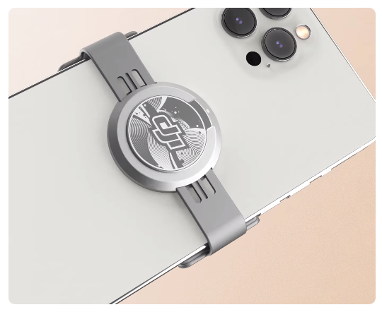 大疆还提供有磁吸手机架,加上手机后,能够迅速吸附到云台上,便于快速安装。