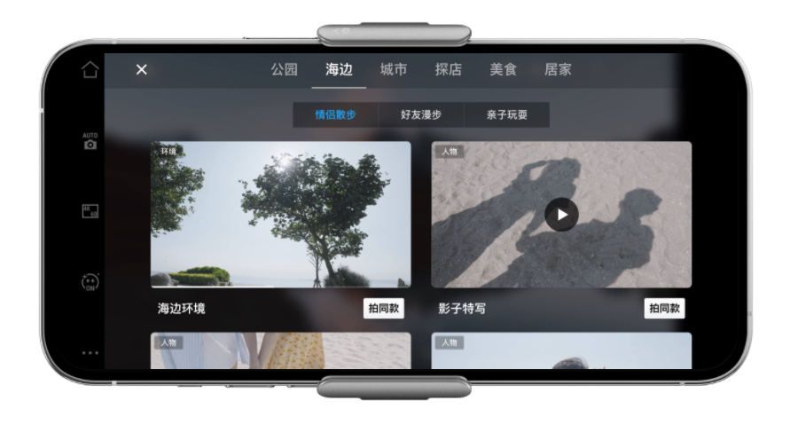 IT之家获悉,大疆 DJI OM 5 云台新增了拍摄指导功能,可以智能识别场景,并启用海边、探店、美食等多种拍摄模板。