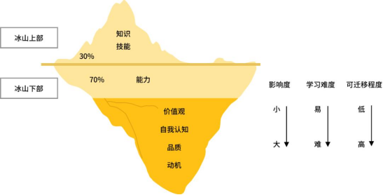 一个岗位需要什么样的人才,我们可以依照麦克利兰的冰山模型来梳理,分别包括冰山以上的外在能力与冰山以下的内在能力。