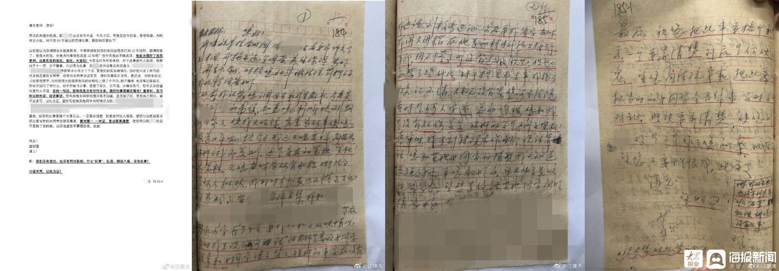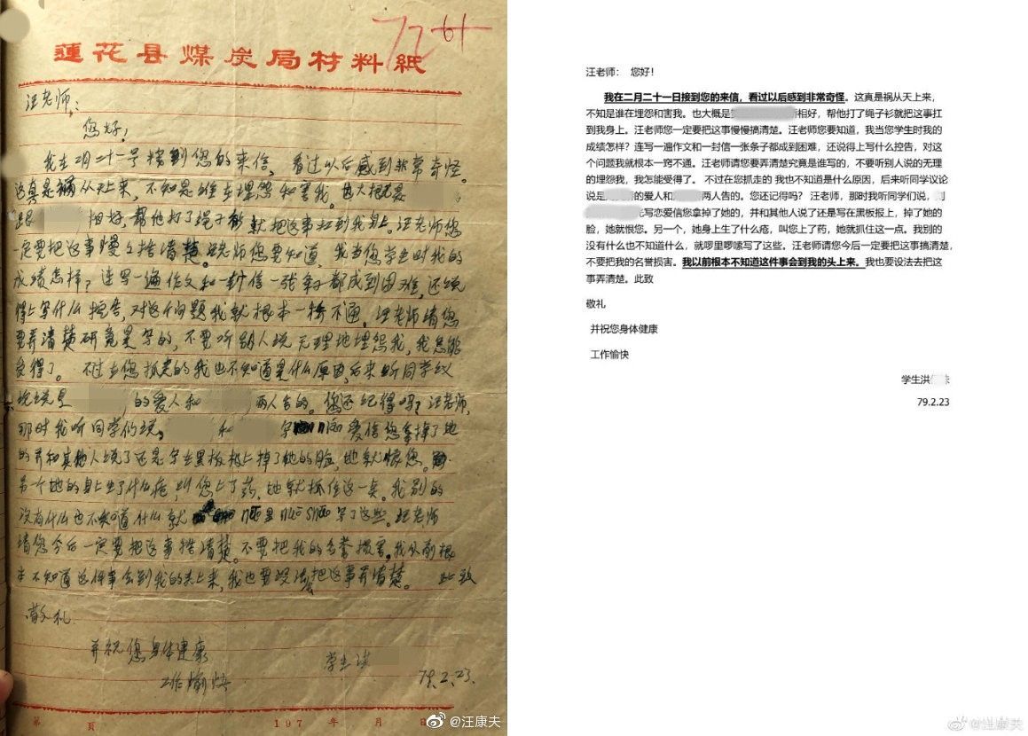 两位“强奸受害者”给汪康夫的回信。受访者供图
