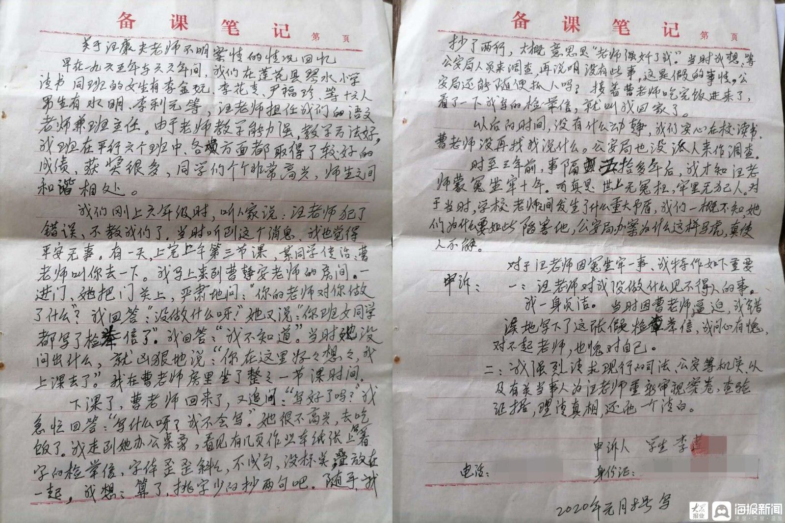 李女士记得,当时曹老师让她写关于汪老师的检举信,后来她随手抄了其他人的检举信交上,大意是“老师强奸了我”,其实当年不到14岁的她对男女之事一无所知。