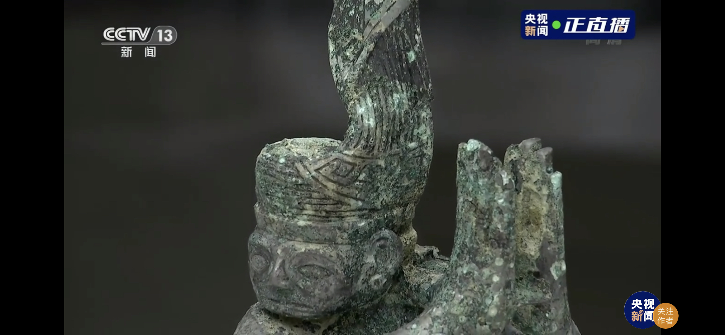三星堆出土的青铜人像中,3尊扭头跪坐人像造型奇特,引人关注。据介绍,扭头跪坐青铜人像身穿三件衣服,头发竖立,但目前还处于残缺状态。4号坑的坑内还发现了若干长条形的头发残件,最长的达到70厘米长。如果能够修复,其头发可能比身体高好几倍!茂盛的头发令不少现代人羡慕。