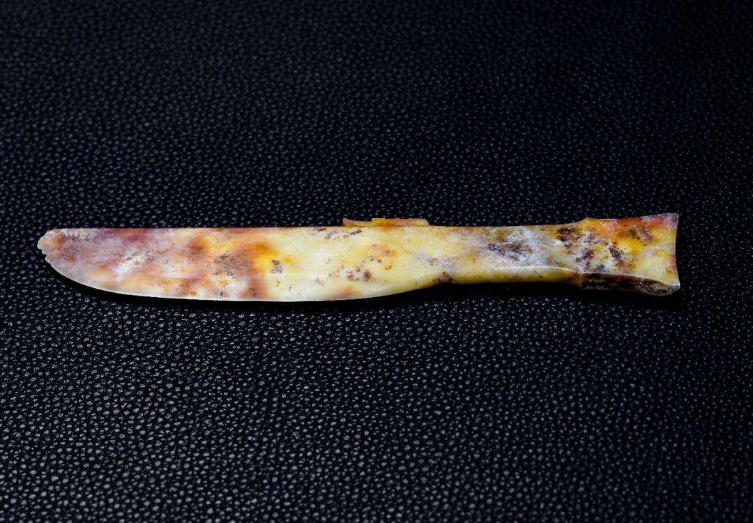 “很特别的是,玉器在古代一般是礼器,没有实用价值,但这把玉刀却是开了刃的,非常锋利。”黎海超说,这把玉刀到底是礼器,还是有实用价值,有待进一步考证。