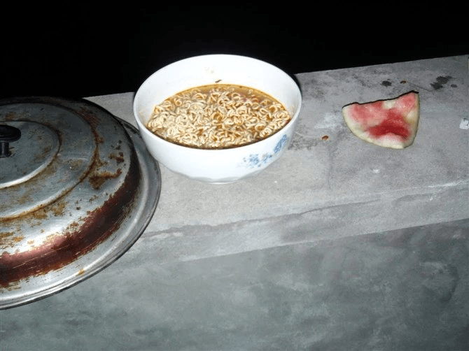 在看英仙座流星雨留下的方便面