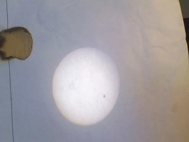 我觉得我们运气可好了,到了那天,上午的时候全是乌云,还以为看不到了,可是1到了下午快15点半时居然乌云散开了。我就用我已经准备好的工具,呵呵,还是上次看日全食那个工具,还是一样的原因。更好笑的是,当我和我们班同学拿工具看时,外班的人居然拿起纸缝来看,这很显然太伤眼睛了。唉~可能是这次他们都不知道吧。