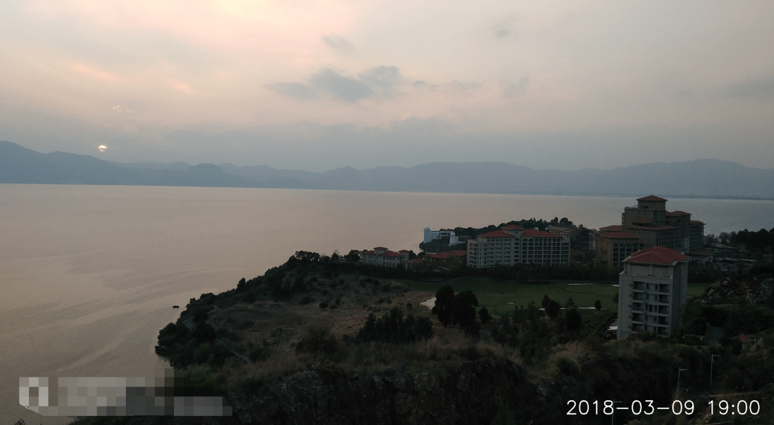 夕阳与抚仙湖还有云南天文台抚仙湖观测站