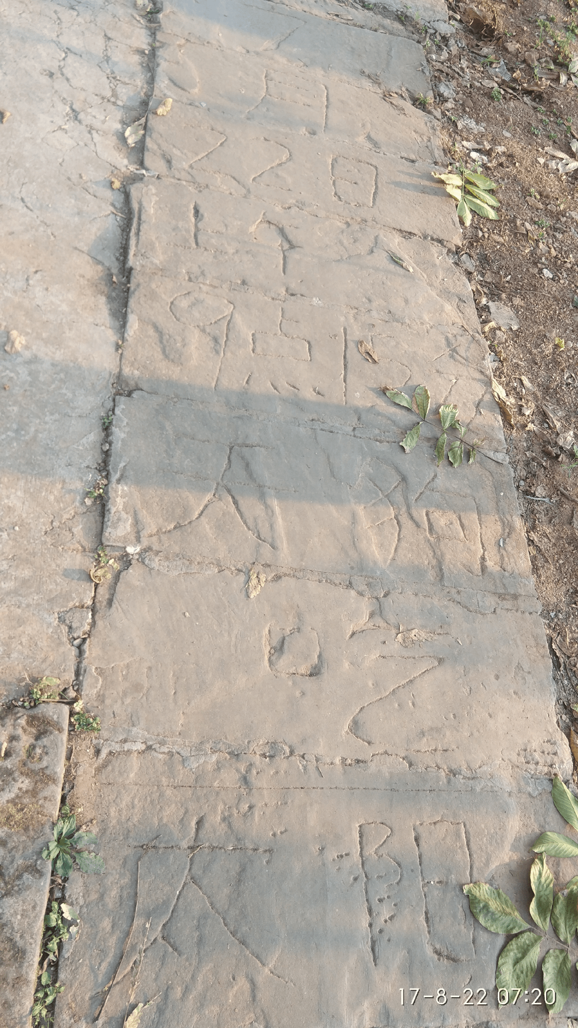 在没上晚自习的时候,我每天放学回到家里,书包一甩,拿起钉子往我家屋前那个路石板钉字钉日全食的时间,我家在农村嘛。屋前有路的。在2011年的时候那个字清晰可见,特别是雨天过后冲洗出来,字就更清晰了。只要我家来客人,就会踩到那个字过去,嘿嘿!他(她)们绝对看得见。