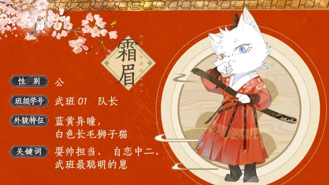 首先向我们走来的,英姿飒爽的蓝黄异瞳的白色狮子猫,是武班队长霜眉,也是御喵房中的耍帅担当,公认的最聪明的崽。