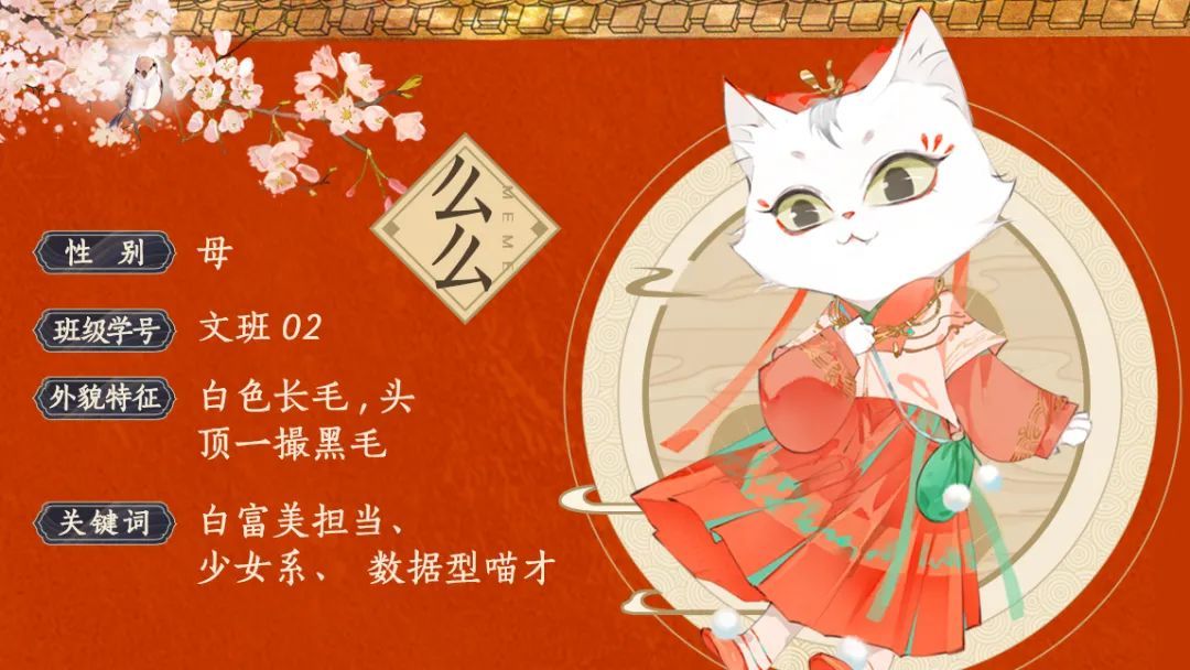 最后就是我们最可爱的文班02么么了,她是鳌拜的妹妹,同时是御喵房的美少女担当,是非常难得的数据型喵才。