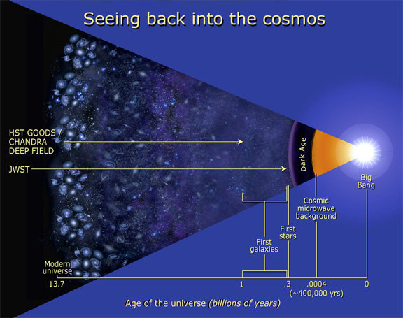 由于其能力,韦伯将能够从比哈勃更远、更早的时间观察太空中的物体。