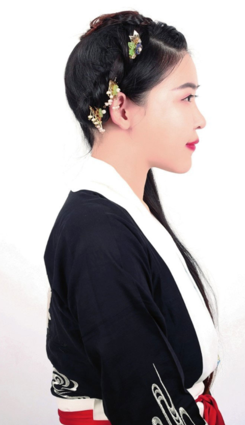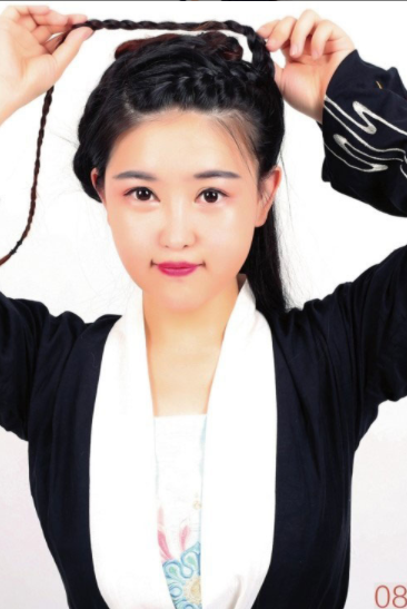 【所用手法】编发,盘发。