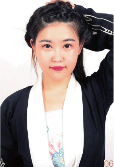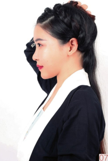 Step 06将辫子从一侧绕于头顶。