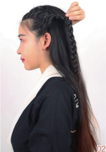 Step 02将左侧头发进行加股编发,直至完成一整条发辫。