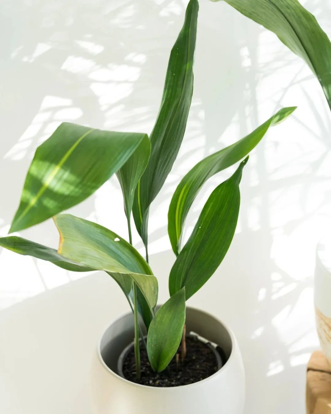 一叶兰的叶子可以直立向上生长,在过度遮阴的环境中,一叶兰的叶子会略微低垂,这个时候就可以稍微增加散射光,避开过度暴晒,否则叶片容易出现晒伤的情况。