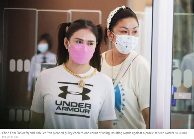 由于对公共服务人员使用侮辱性言语,Koh 和 Chee 可能会被分别判处最高一年的监禁或最高 5000 元新币的罚款,或两者兼施。