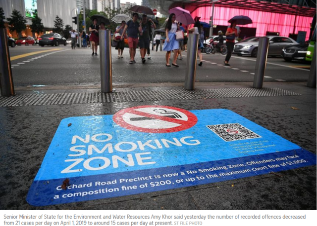 新加坡街头的禁止吸烟区。图源:海峡时报网站截图