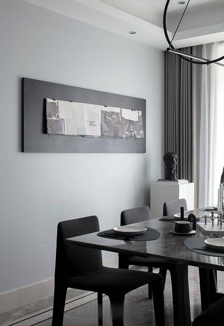 ▲灰色的墙面基础,挂上一幅黑白色的横幅挂画,在整个餐厅的家具与饰品布置上,都是以黑白配的色调设计,让空间显得时尚高级。