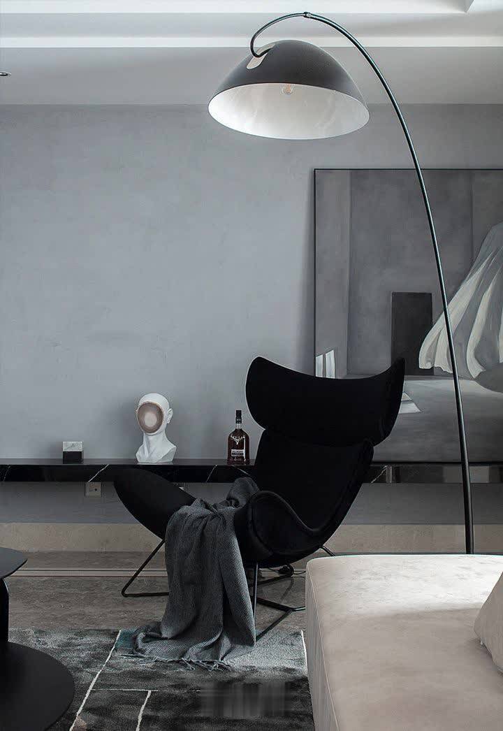 ▲黑色单人沙发椅与落地灯的布置,也为主人营造了一个轻松舒适的享受位置。