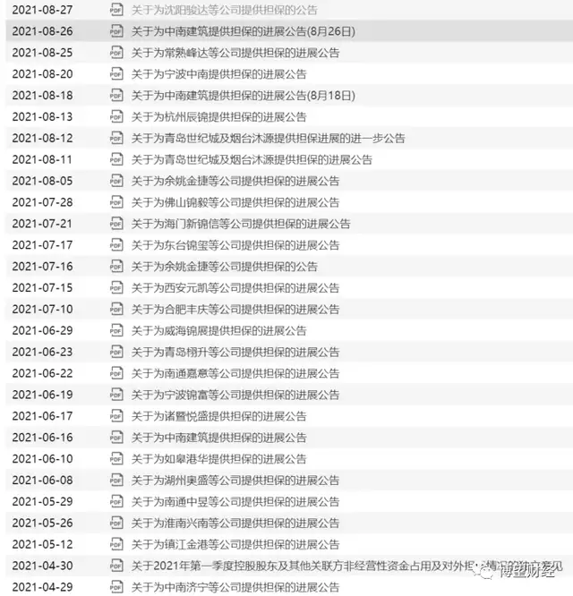 值得一提的是,这并非中南建设首次为联营、合营公司提供担保,2021年以来已发布逾40份担保公告,足可见其担保规模很大。