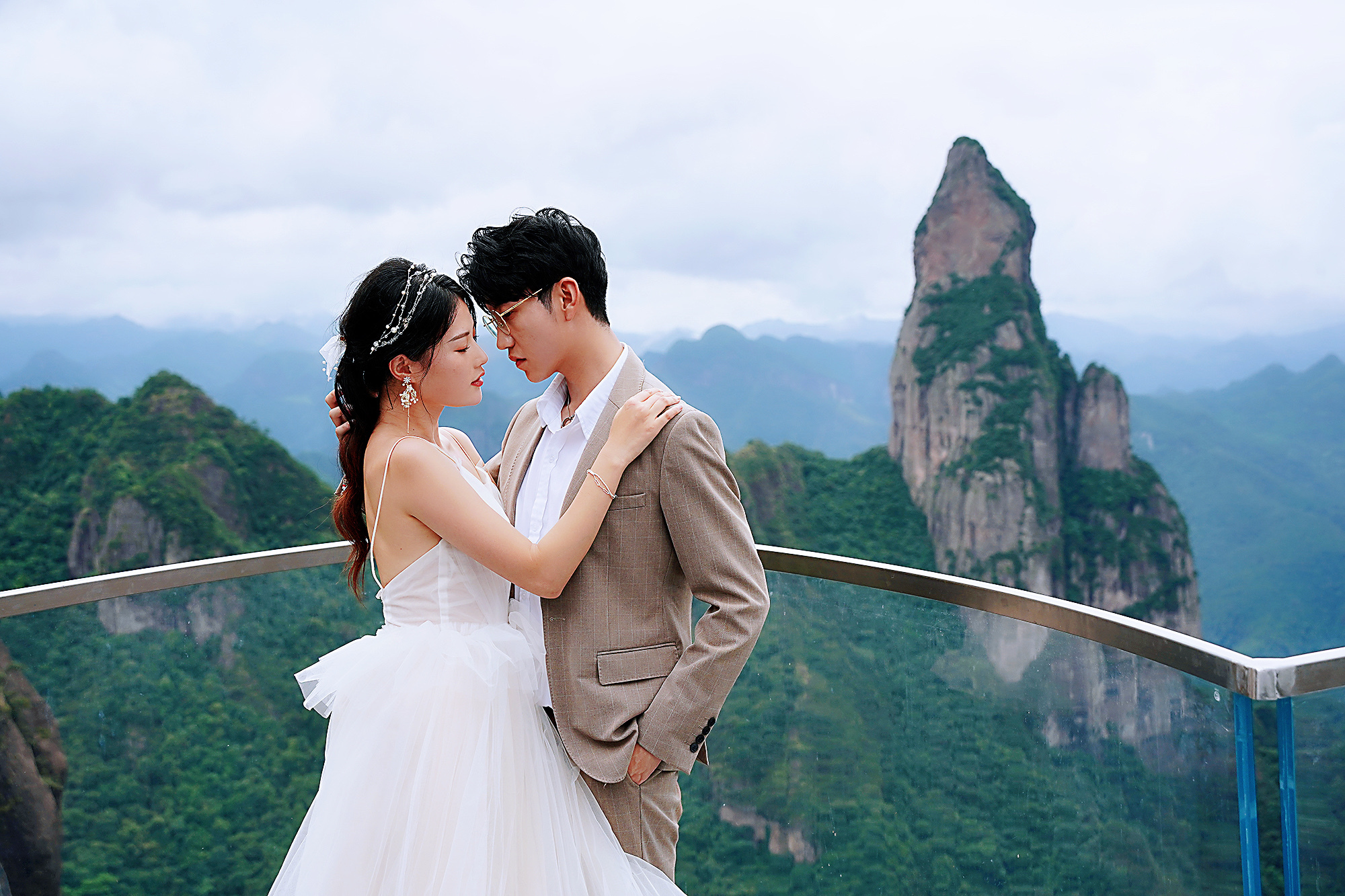 尤其是雨后,朦胧苍翠的山谷间漂浮的薄雾,像是温婉的新娘身披一层薄纱,更让人浮想联翩。被雨水润湿的问仙桥上,偶遇一对情侣,女生穿着洁白婚纱亭亭玉立,男生一袭浅色西装温文尔雅,他俩手牵手走在问仙桥上,时而窃窃私语、时而眉目传情间,这便是清秋微雨中爱情的模样。
