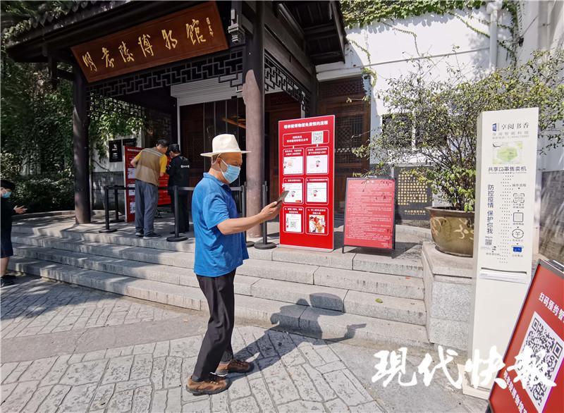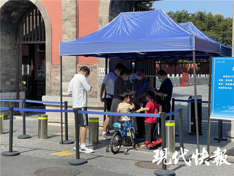9 月 10 日上午,现代快报记者来到南京市博物馆。虽然是周五,但不少市民早早来到门口,工作人员提醒大家,入馆必须扫码预约、出示苏康码、测量体温,再经过安检,方可入园。记者看到,有些老人不太会输入信息,工作人员都会耐心讲解、帮助填写。"" 朝天宫周围的居民比较多,博物馆门口的区域基本上是大家日常休闲场所,但疫情防控期间必须要预约入园,市民们都很配合。""