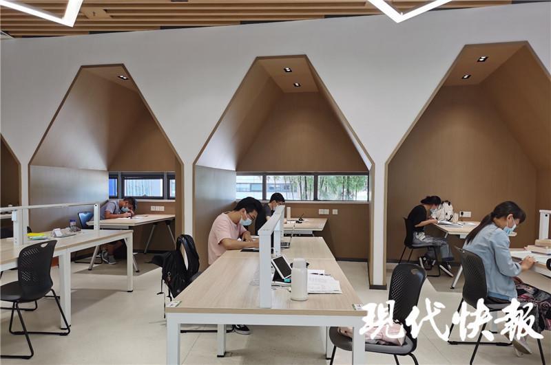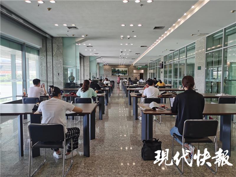 中午 11 点左右,阅览室里几乎没有空位。读者之间保持间距,原本的四人桌只配了一张座椅,所有读者面朝同一方向,戴着口罩。阅览室里特别安静,能听到刷读者证的 "" 滴 "" 声。大家在这里读书,戴着耳机上网课,或者奋笔疾书做习题。"" 还是觉得图书馆里的学习环境更好,更能集中精力看书。"" 正在自习的读者李女士告诉记者,前一天晚上看到开馆信息之后,她就在线预约,早上 9 点就来了。