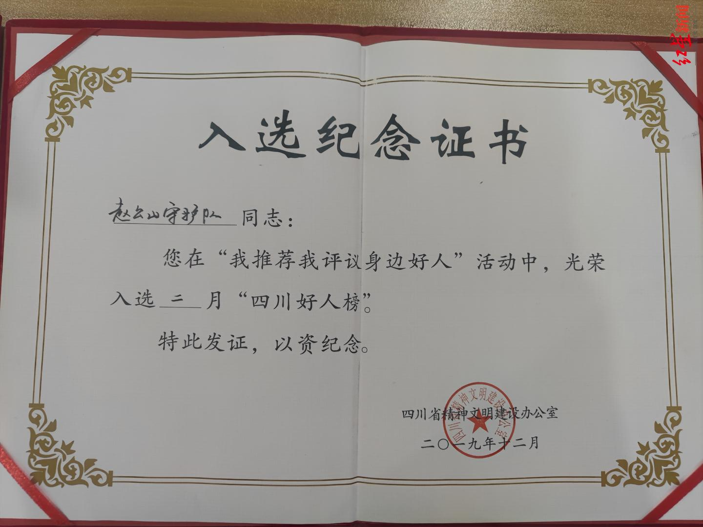 搜救队获得的奖状
