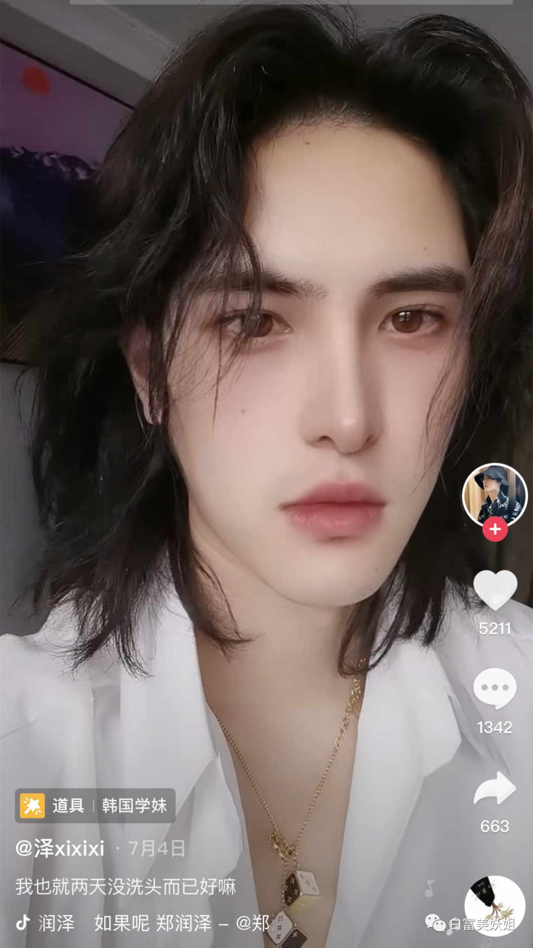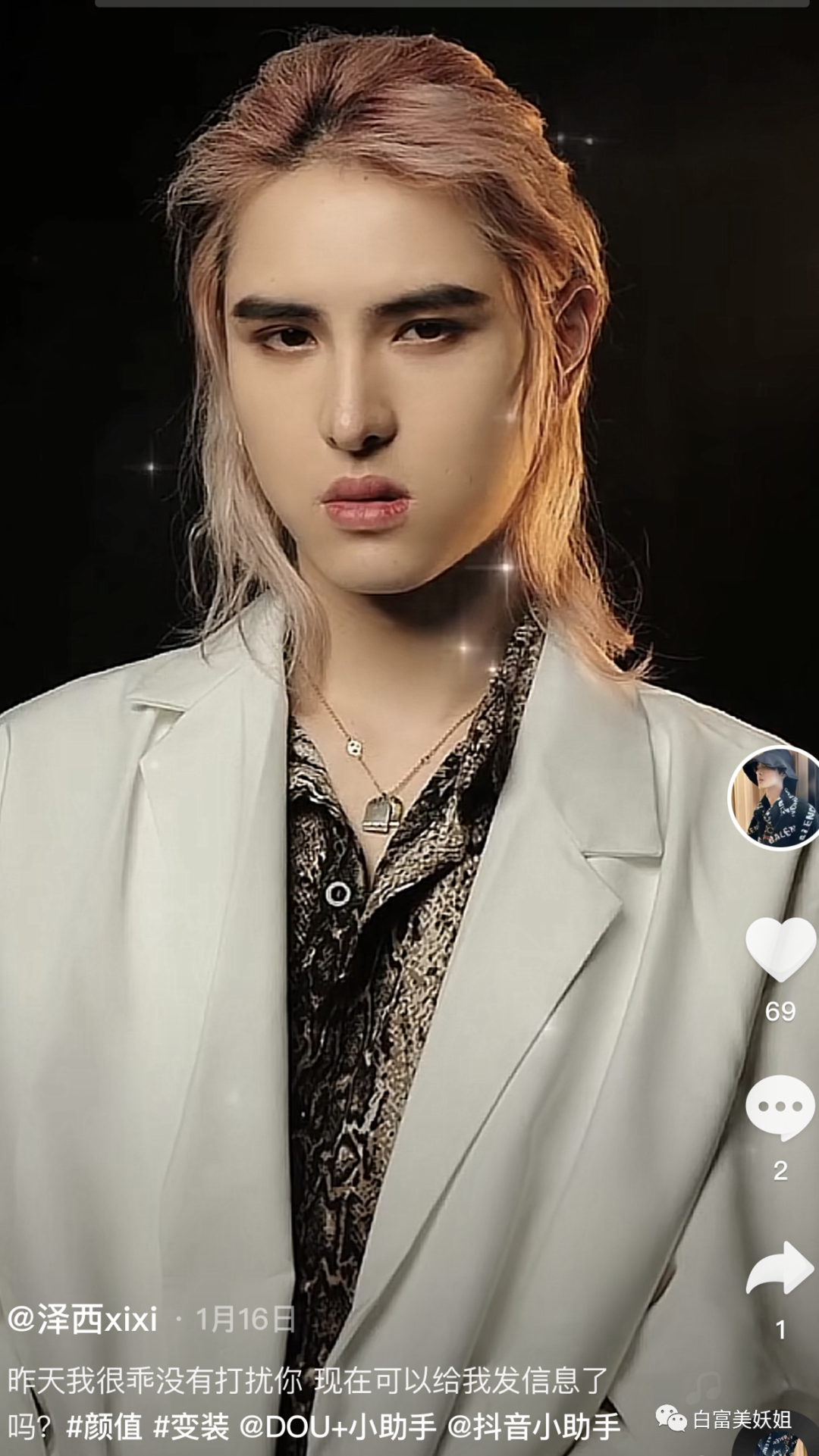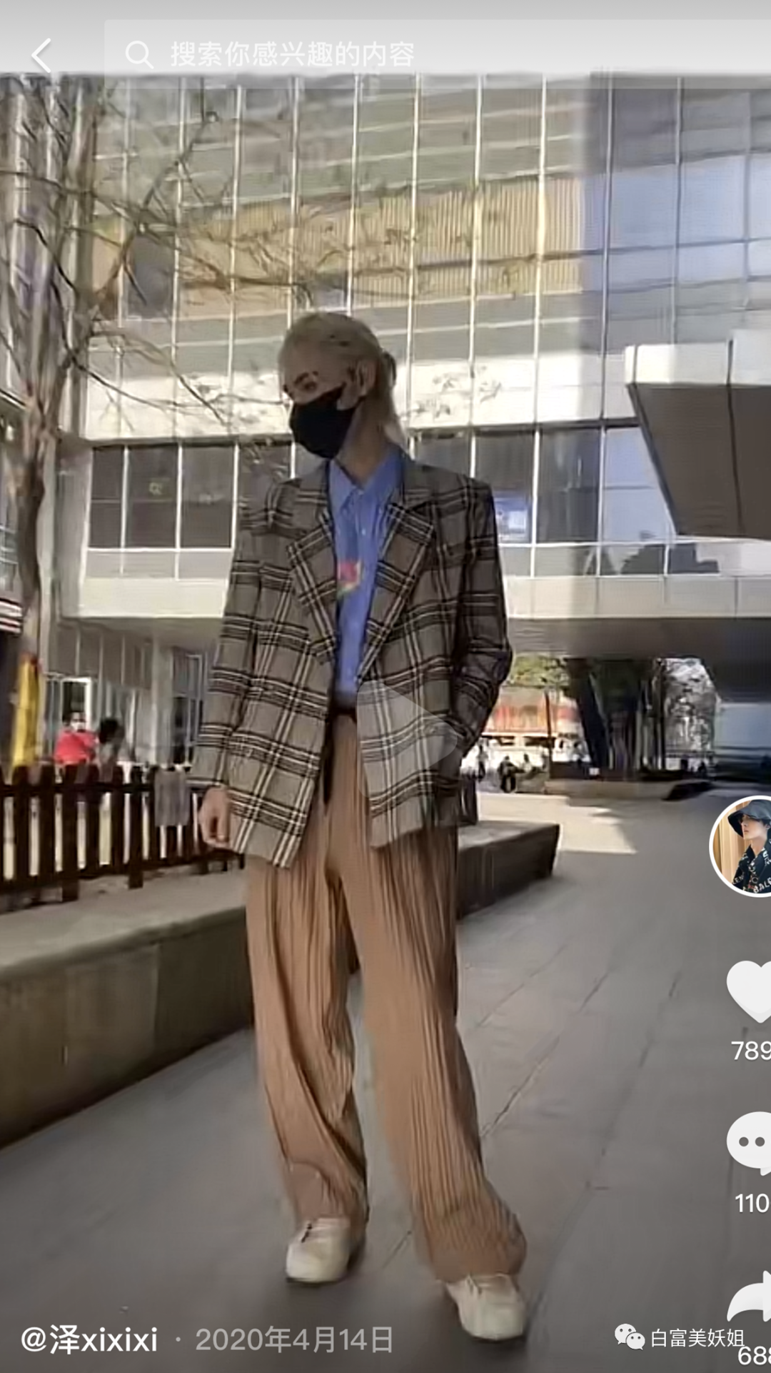 有爆料说他其实是个男模,半扎丸子头,出街必开挂。