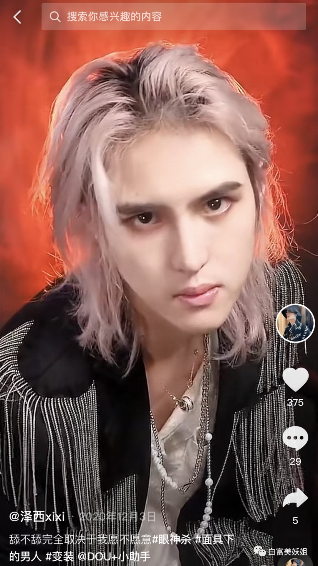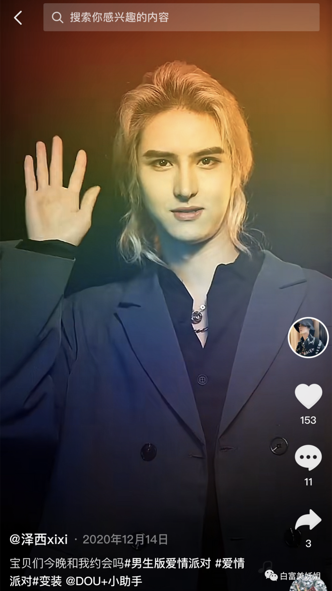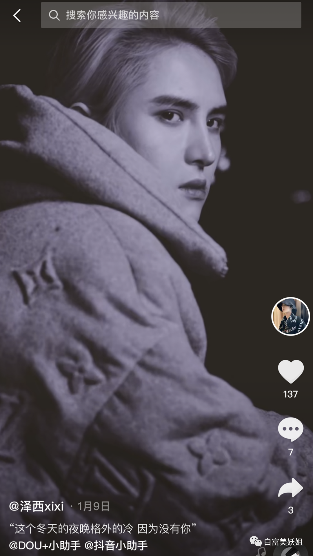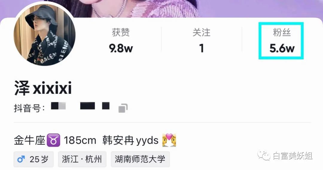 他的抖音名为 @泽xixixi ,只有5.6w粉丝。