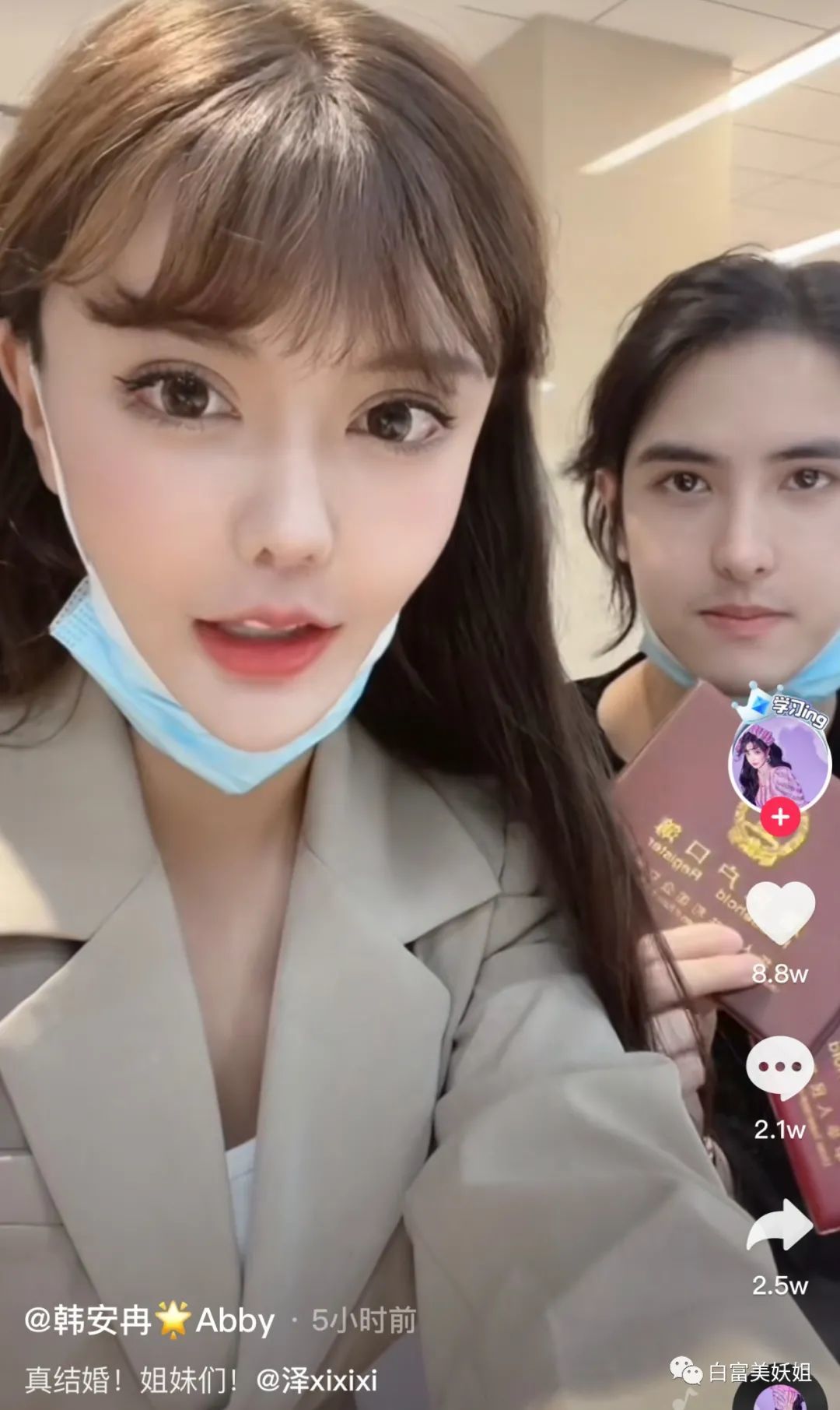 很快,韩安冉也po出领证时拍的视频, 证明真的不是闹着玩儿。