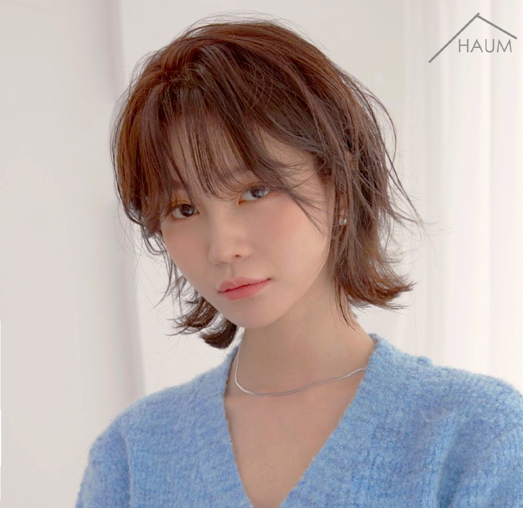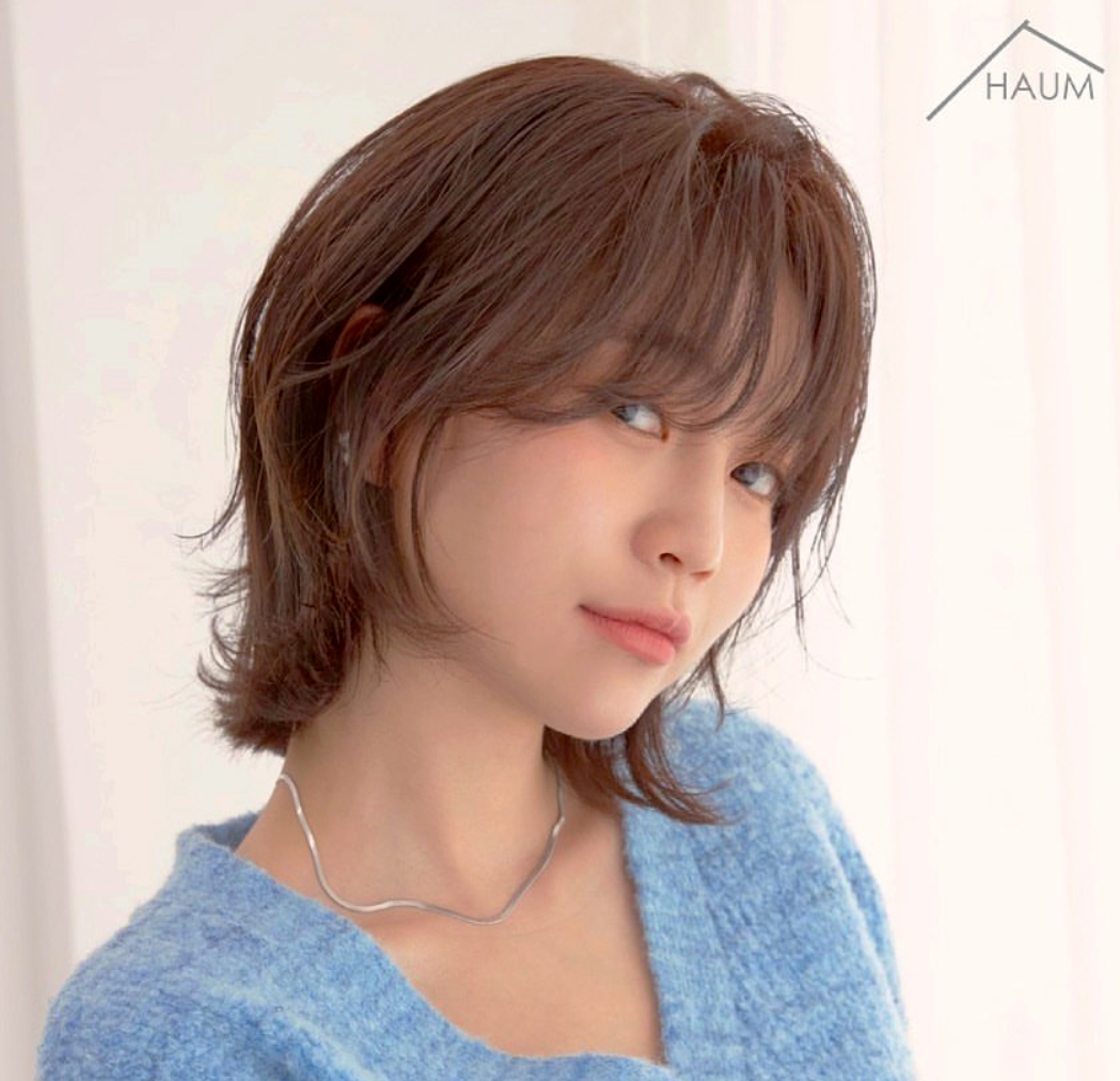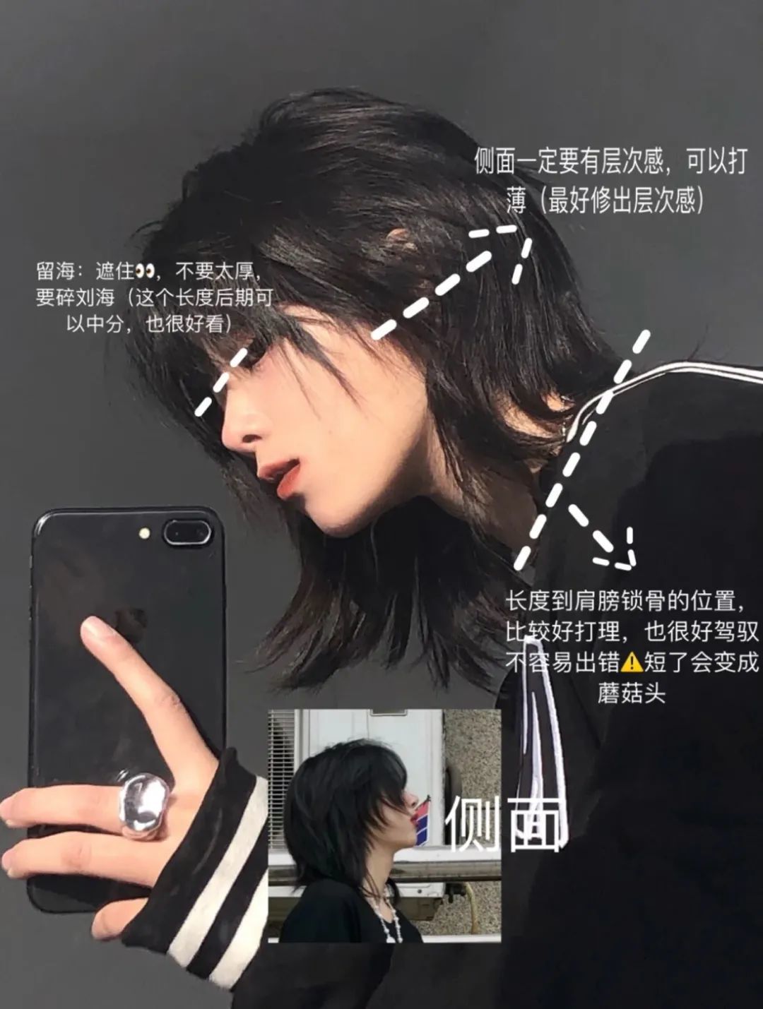 发尾要稍长一点,有层次感,剪出细细碎碎的感觉,稍微带点卷感,侧面可以很好地修饰下颚线~