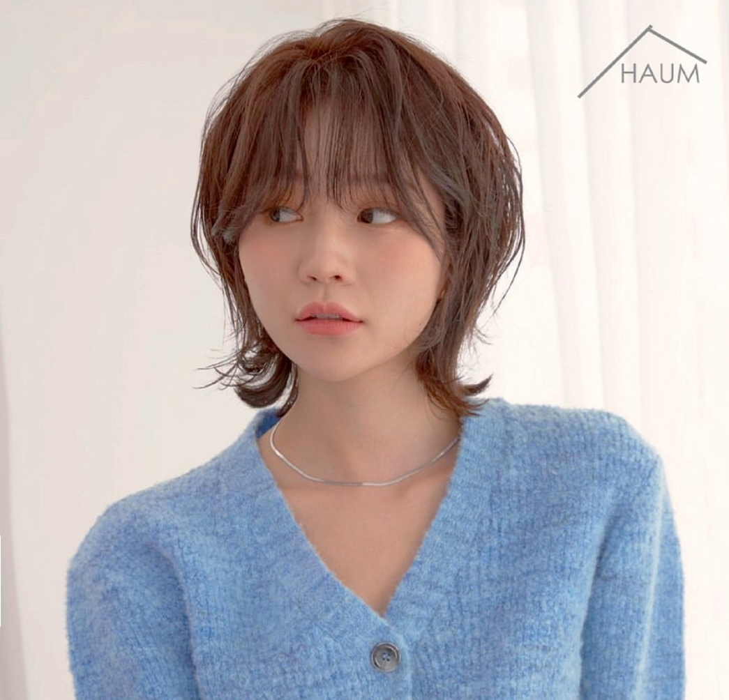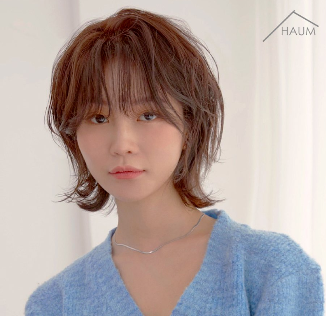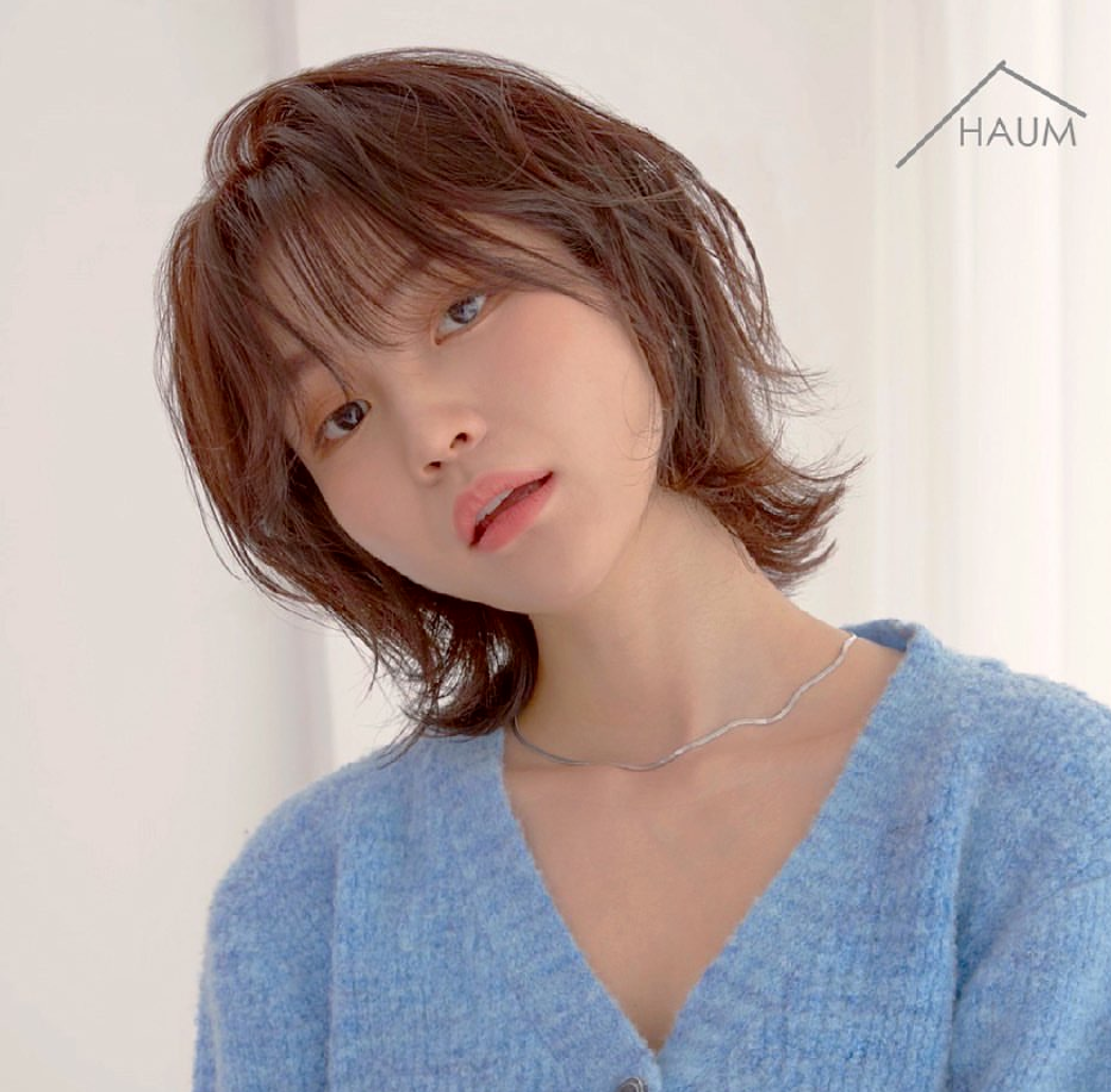 发尾要稍长一点,有层次感,剪出细细碎碎的感觉,稍微带点卷感,侧面可以很好地修饰下颚线~