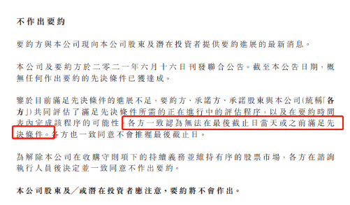 9月10日,SOHO中国发布公告称,由于在截止日之前,“先决条件”未达成,黑石终止收购SOHO。
