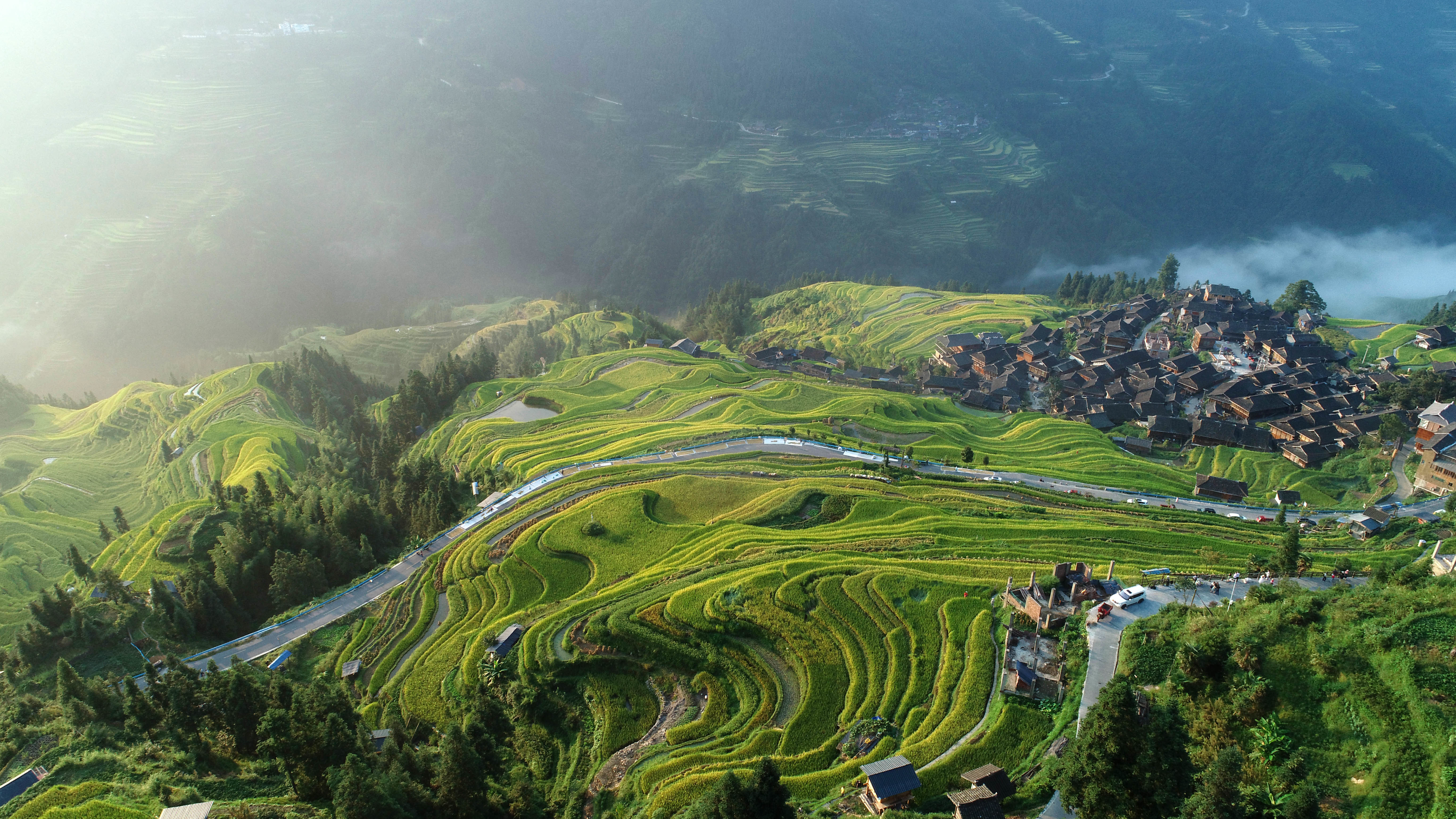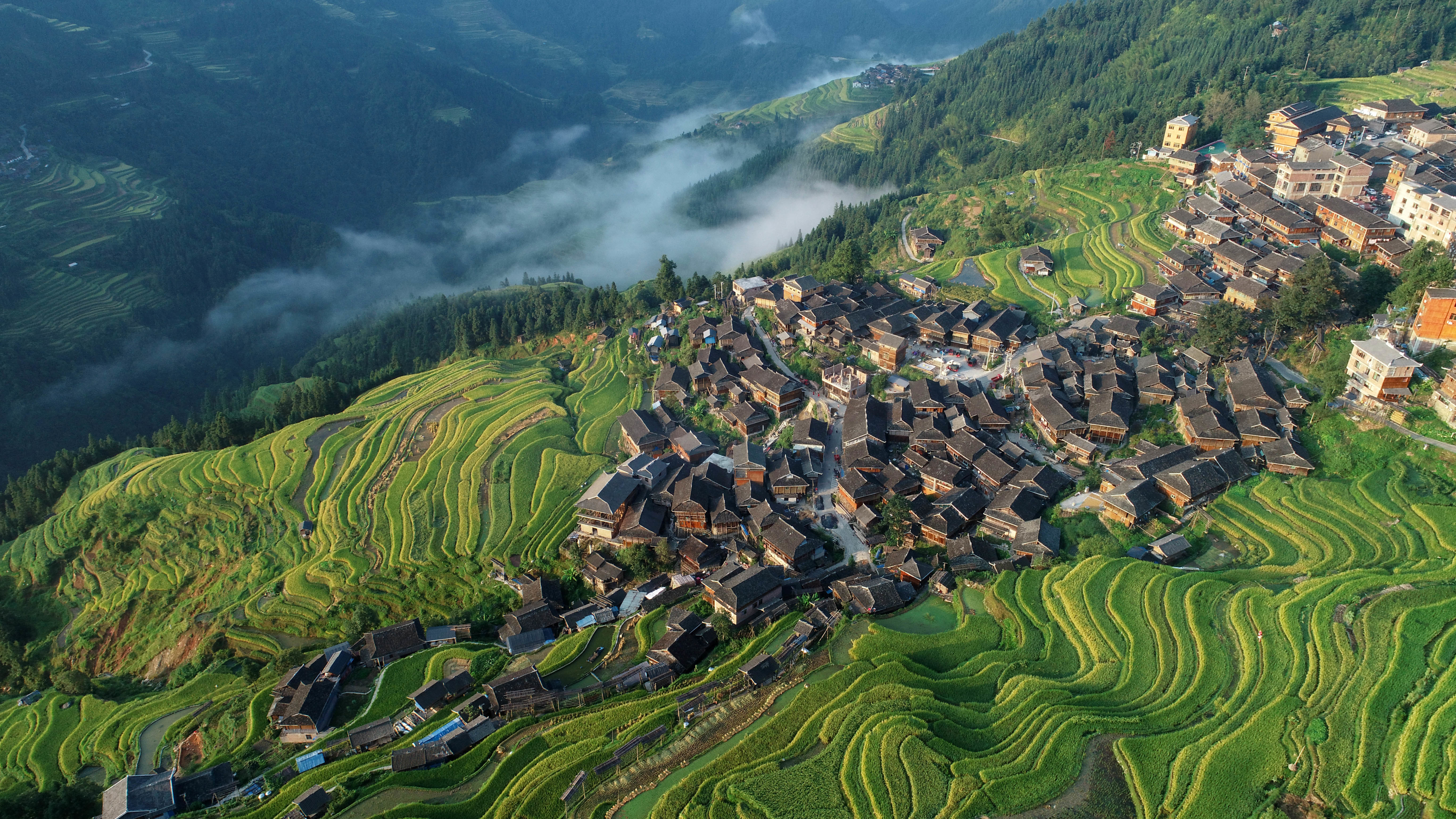 9月11日在从江县加榜乡加车村拍摄的梯田和村庄(无人机照片)。新华社发(吴吉斌 摄)
