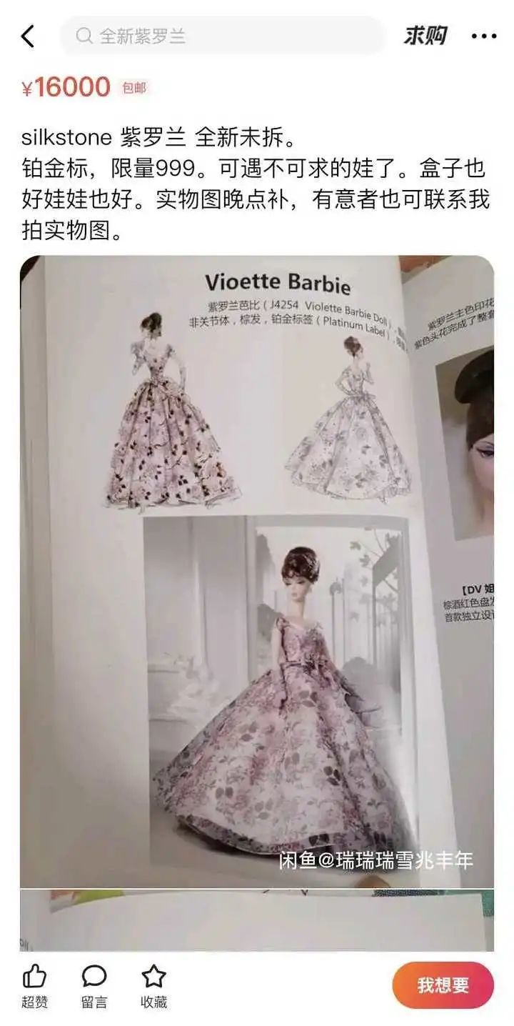 但芭比娃娃不同,限定版的芭比娃娃,购买时间越长越值钱,愿意几万几十万出钱购买的亦有人在。