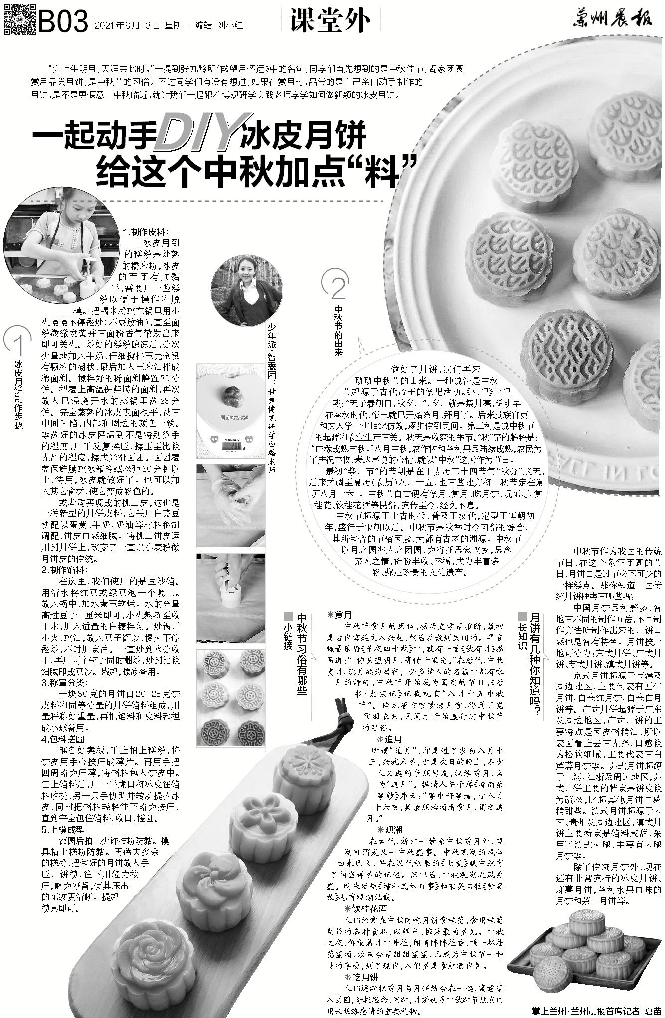 “海上生明月,天涯共此时。”一提到张九龄所作《望月怀远》中的名句,同学们首先想到的是中秋佳节,阖家团圆赏月品尝月饼,是中秋节的习俗。不过同学们有没有想过,如果在赏月时,品尝的是自己亲自动手制作的月饼,是不是更惬意!中秋临近,就让我们一起跟着博观研学实践老师学学如何做新颖的冰皮月饼。