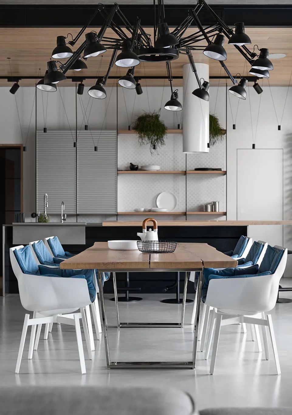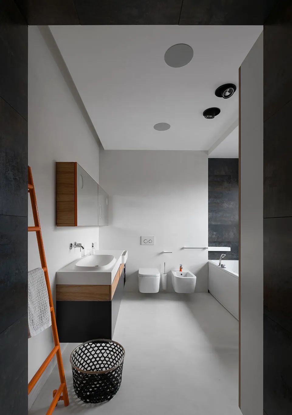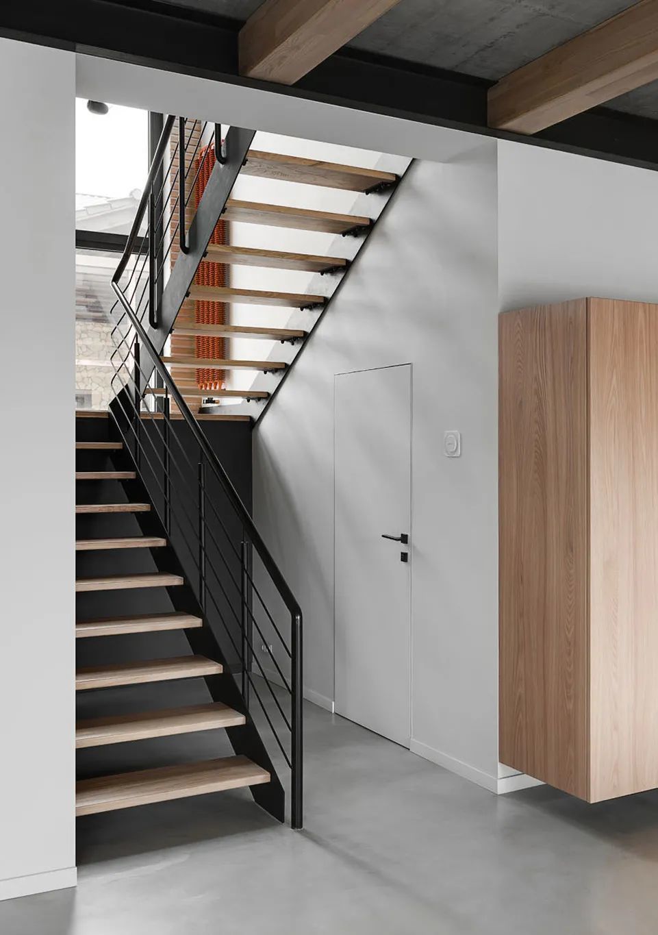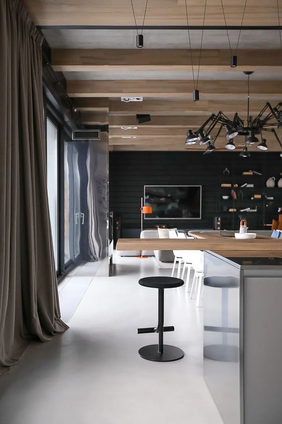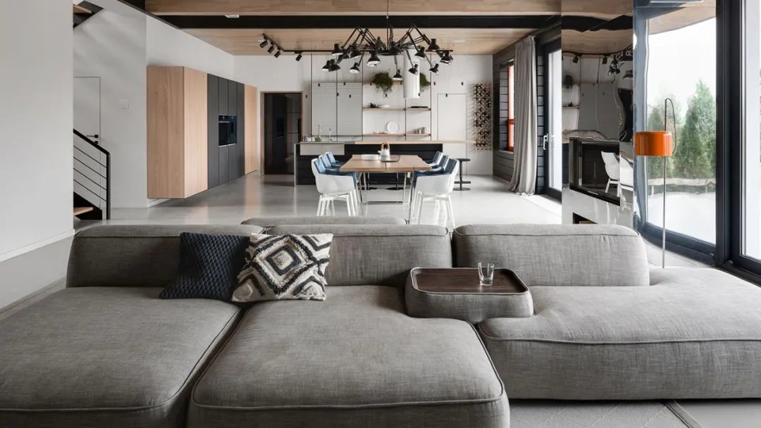 Azovskiy+Pahomova新作,310㎡的二层房子,业主不爱浮夸,更希望一个简约温暖的空间,在材质上以天然元素为主,清水泥与木材、金属贯穿着整个室内,而在用色上,除了木质原色外,黑、白、灰三色的巧妙搭配,则彰显着色彩的魅力。