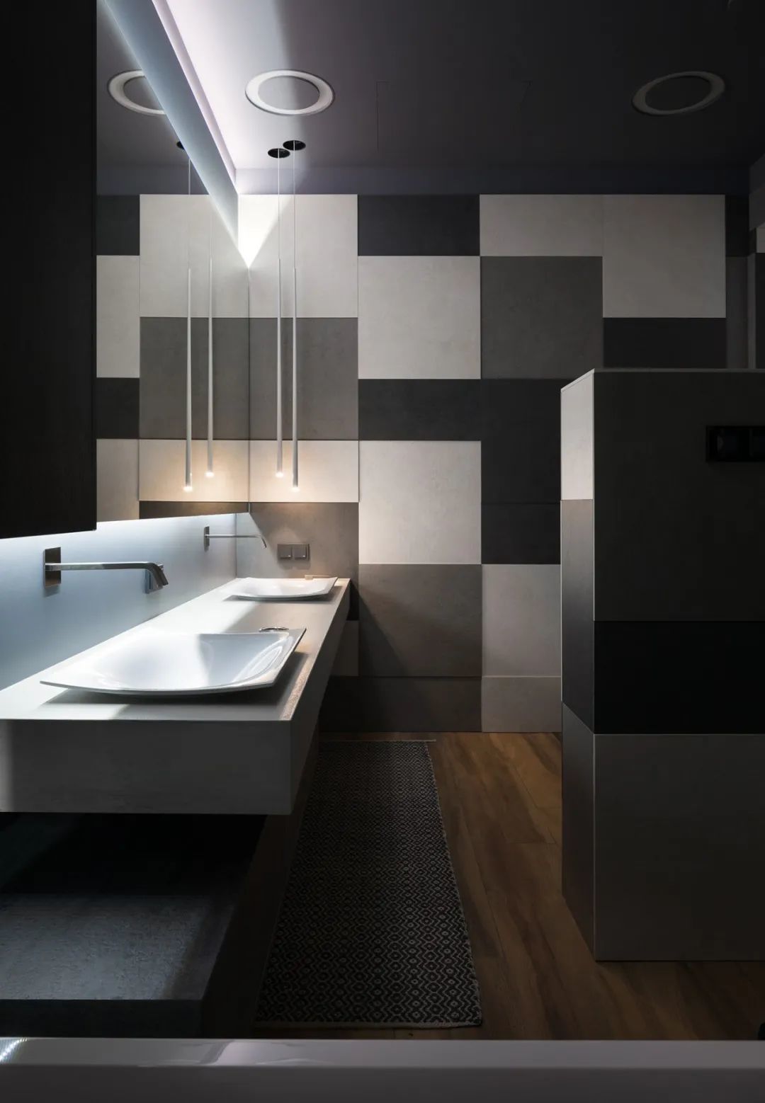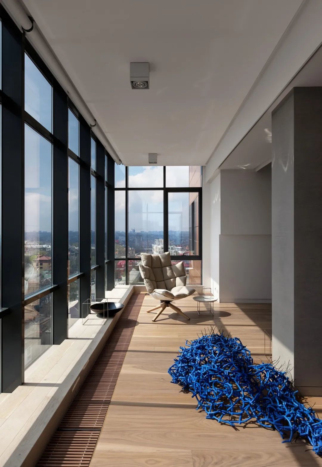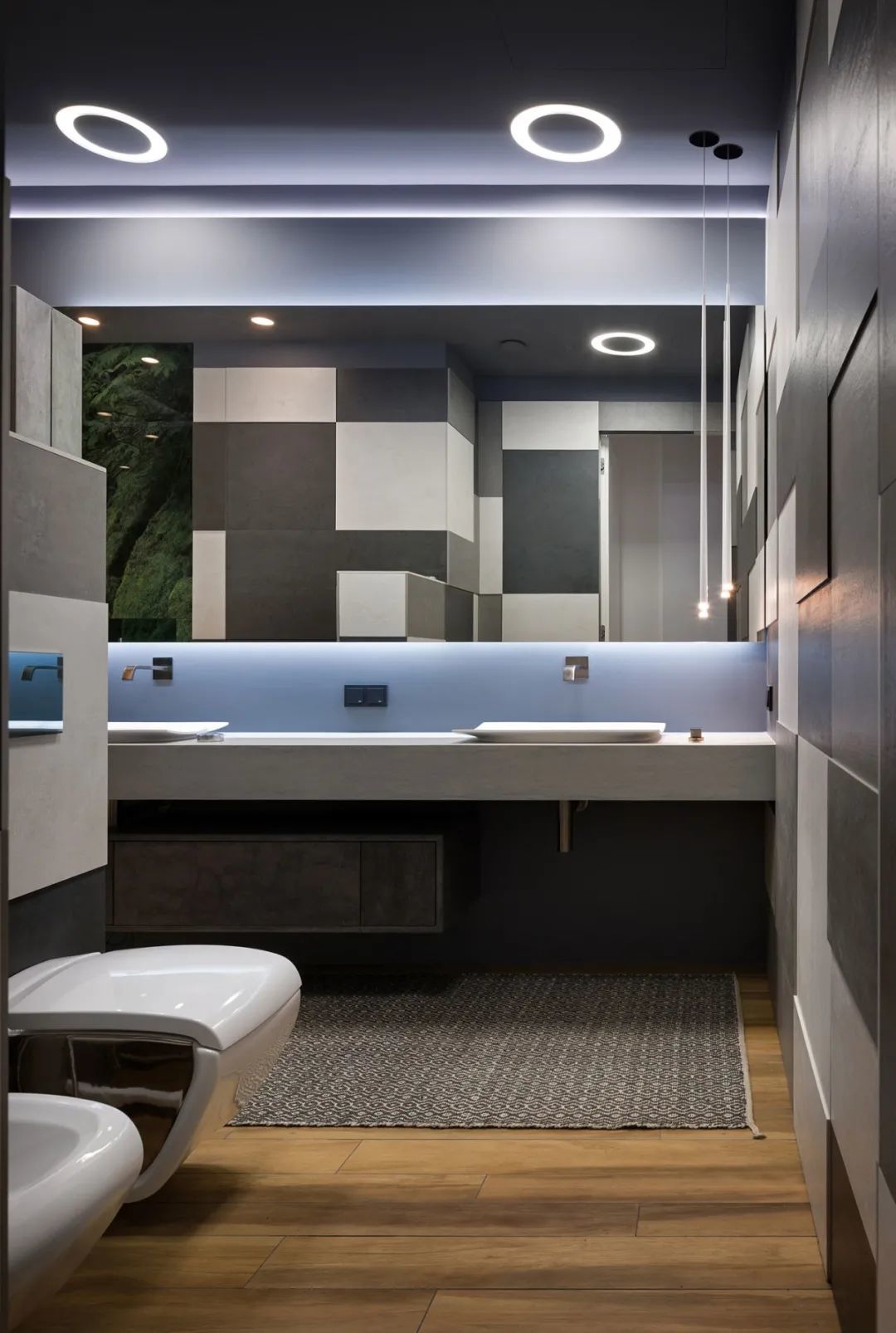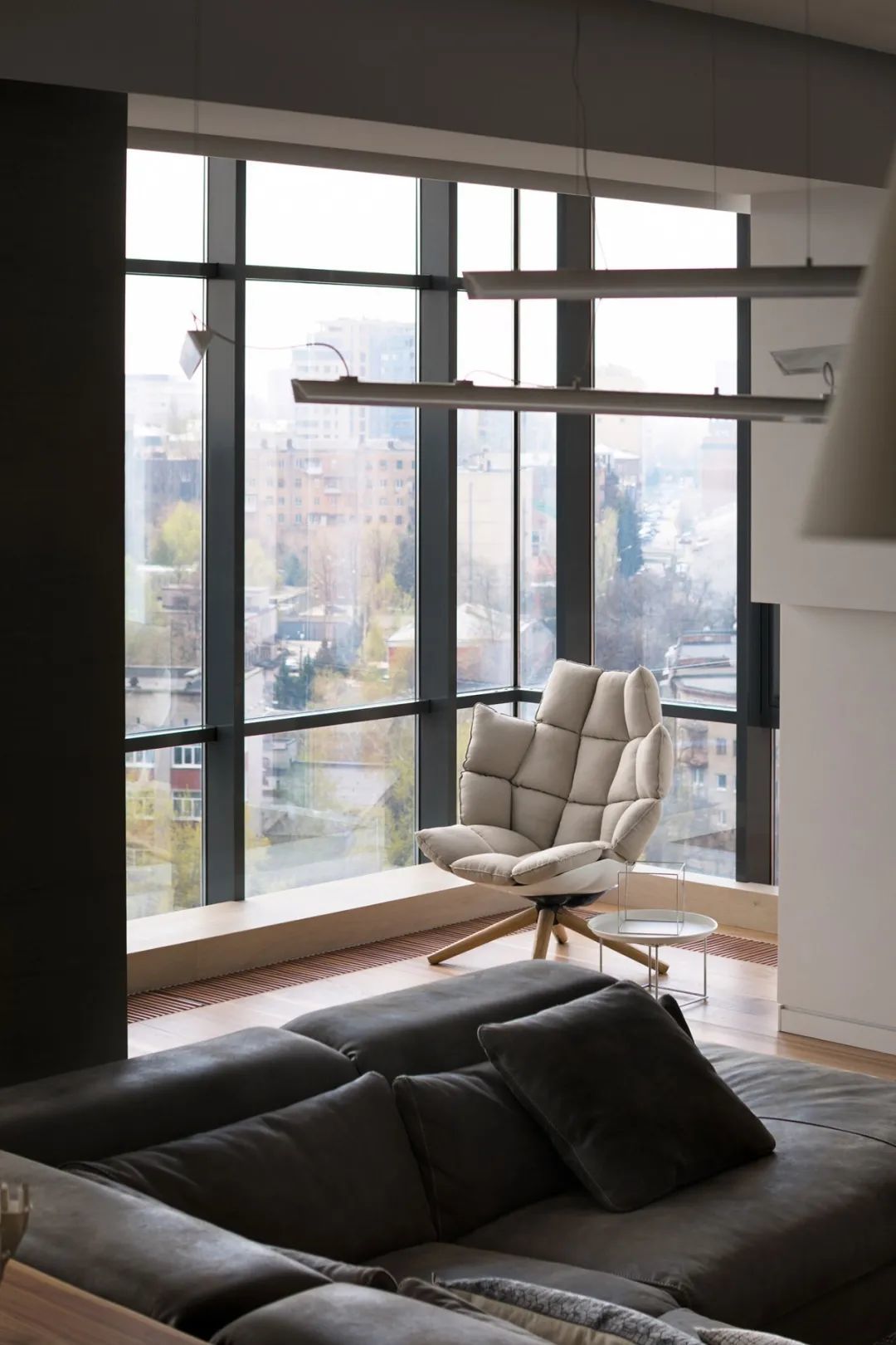 Azovskiy+Pahomova新作,310㎡的二层房子,业主不爱浮夸,更希望一个简约温暖的空间,在材质上以天然元素为主,清水泥与木材、金属贯穿着整个室内,而在用色上,除了木质原色外,黑、白、灰三色的巧妙搭配,则彰显着色彩的魅力。