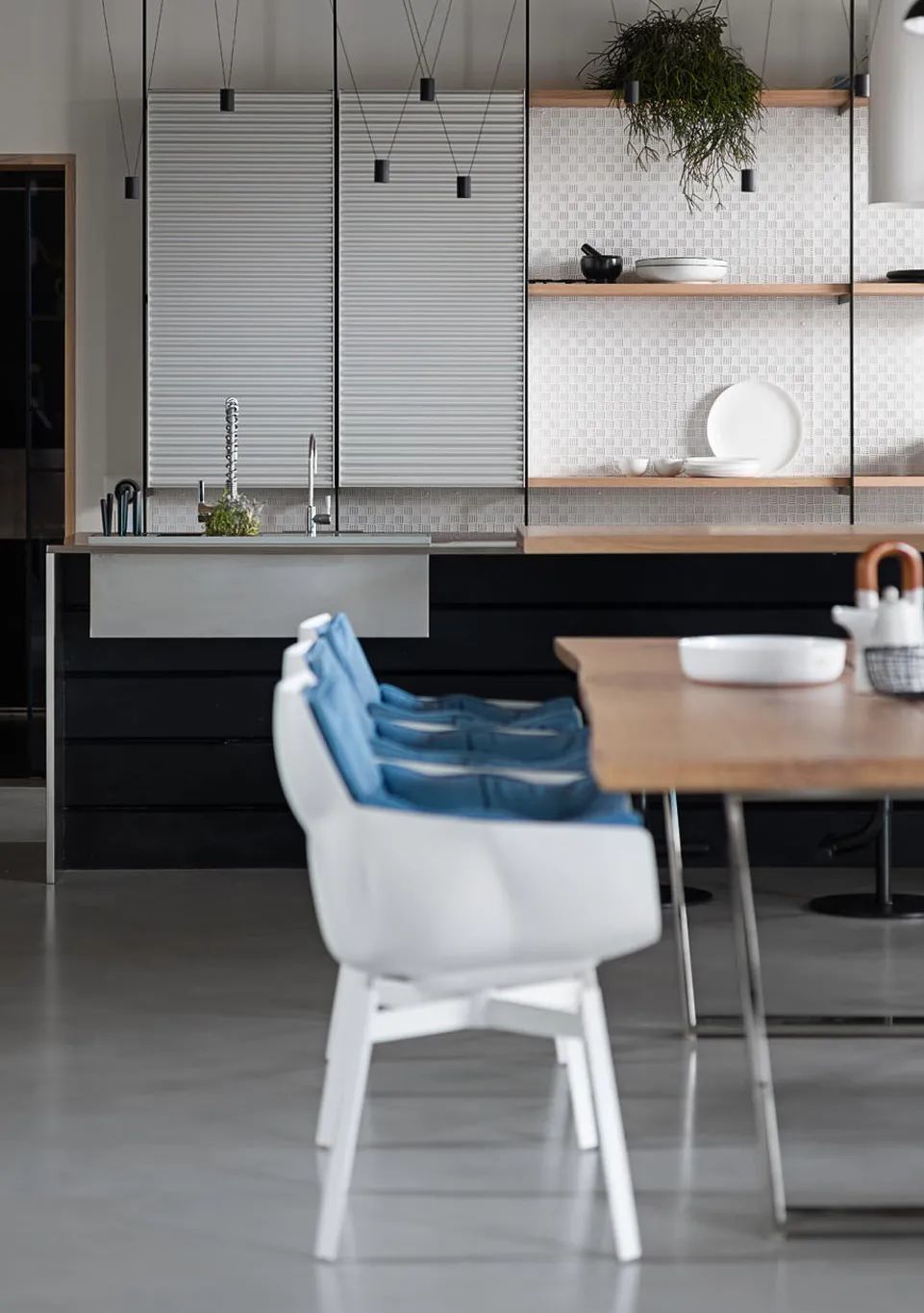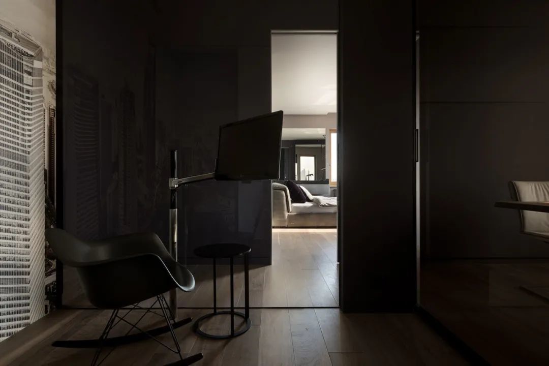 为了更舒适地利用房间,Rimadesio的滑动系统和门已广泛应用于厨房和办公室的入口。在厨房中,在客厅中,都有浅色和深色的搭配,其中的材料是木材、石材和玻璃。