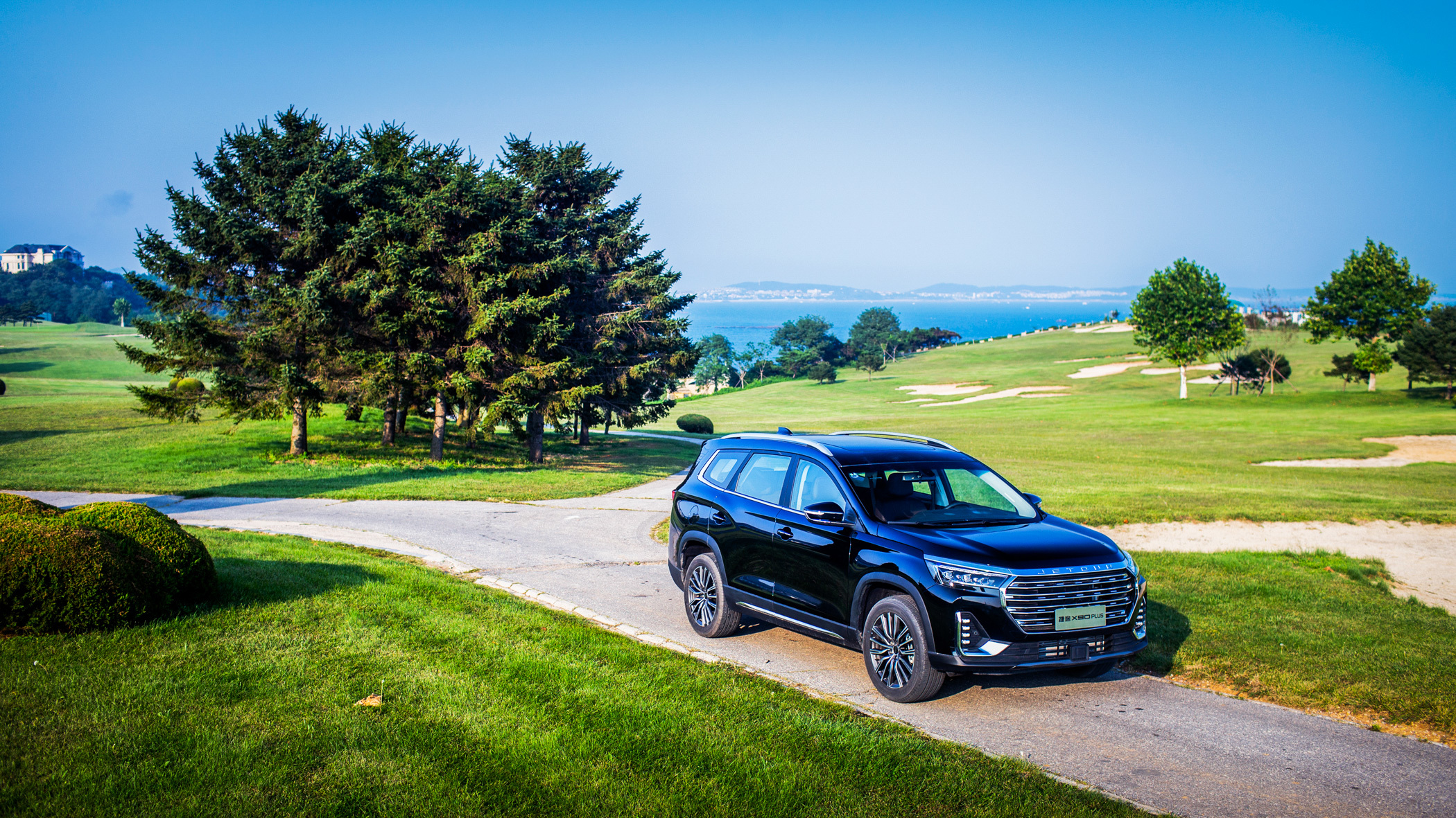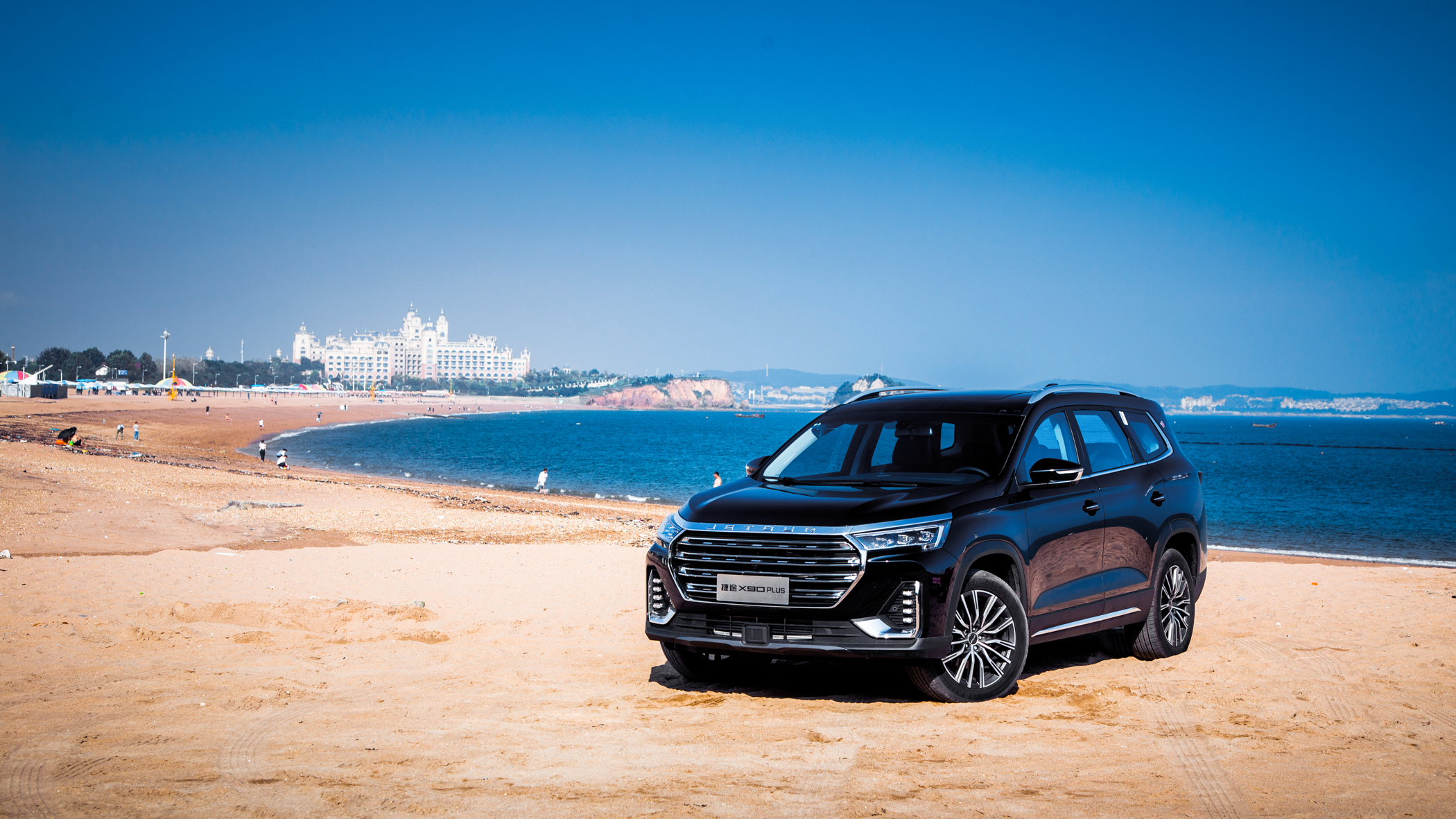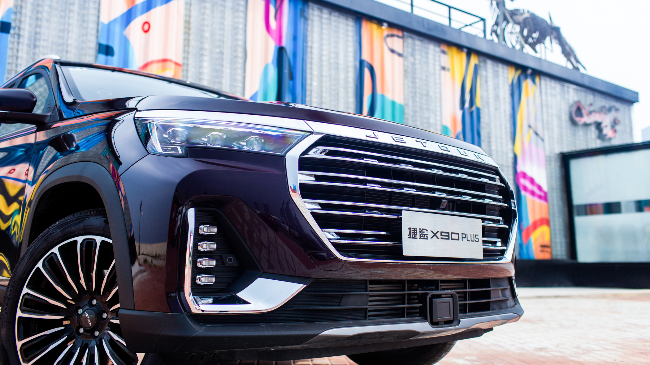 大灯与中网的上部采用了粗壮的镀铬饰条贯穿,两侧上翘颇有徽派建筑马头墙的神韵。JETOUR的品牌字母标识镶嵌其上,视觉上也显得足够精致。