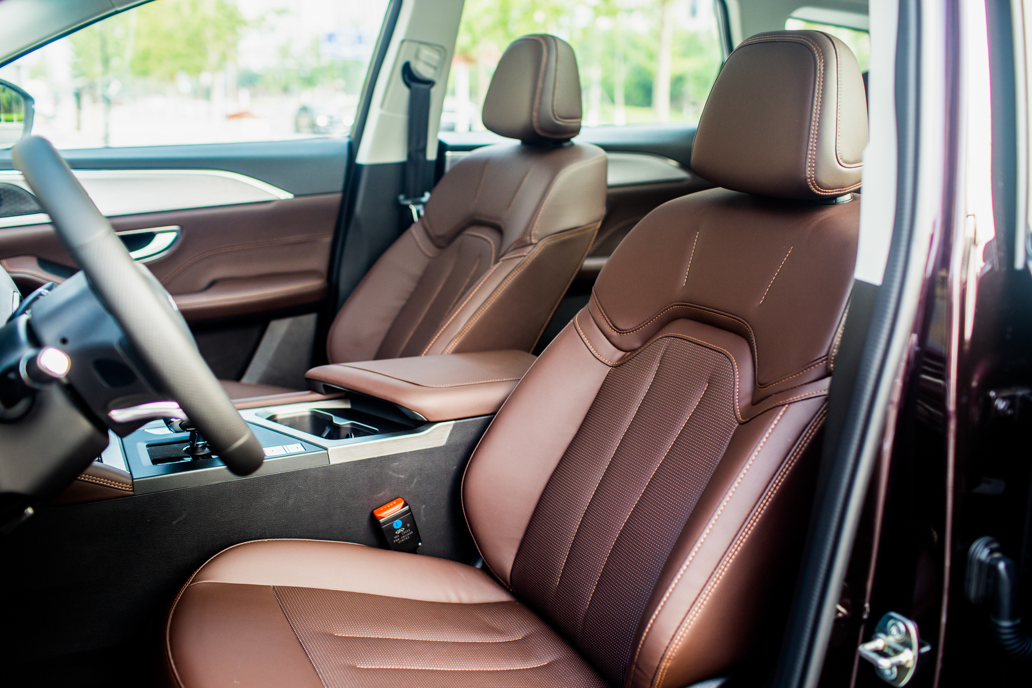 内饰方面,捷途X90 PLUS相对于现款车型来说,内部的设计更加简约化,面板材质的反光质感更加深邃,简化了一些实体按键。同时中控依然大面积采用了皮质包覆,做工细致,触感极佳。