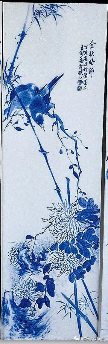 瓷板画青花瓷板画,瓷板,亦称瓷“板画”、“瓷像”。是一种直接在瓷板上绘画的瓷制艺术品。烧成后,画面上永不褪色。瓷板画产于江西景德镇,是在中国的传统画法、陶瓷彩绘和西方照相术的基础上发展起来的,均适于绘制釉上彩和釉下彩。
