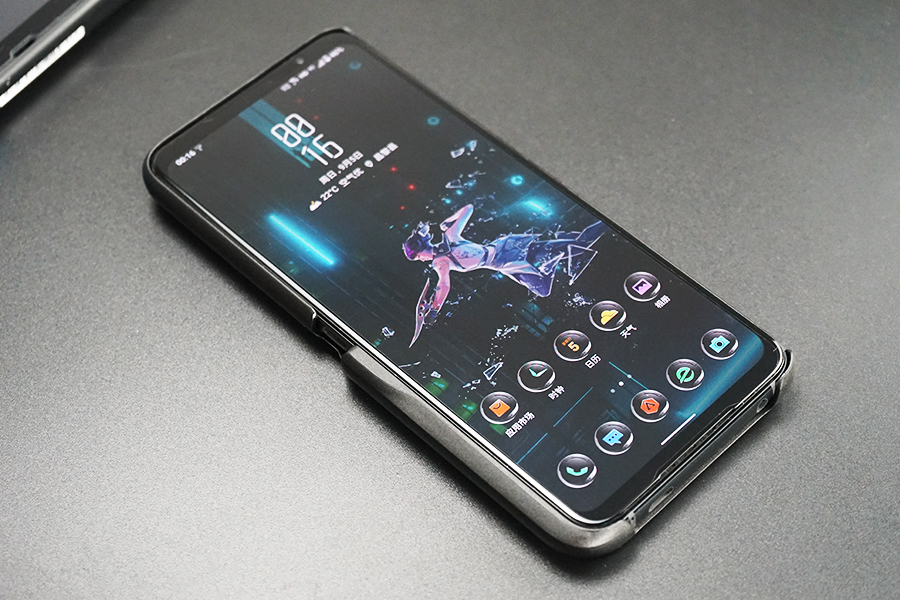 ROG炫彩保护壳需要单独购买,这是一款偏传统但又个性十足的保护壳,它比Aero镂空保护壳更厚重,保护也更为全面,仅把功能按键、接口和后摄模组露出来,手机背部的败家之眼logo灯被完全掩盖,取而代之的是在手机壳上单独做了一个更大尺寸的败家之眼。