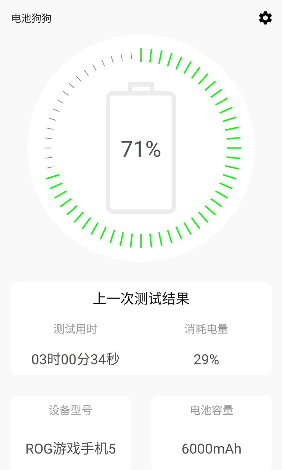 电池狗狗软件全场景测试3小时情况下耗电29%,由此测该机的续航能力可以轻松达到9小时以上,这还是在不间断使用的情况下,日常使用情况下其续航时间肯定还要长不少。