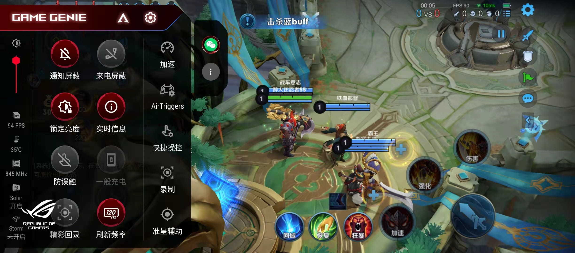 游戏操作方面,腾讯ROG游戏手机5s搭载AirTrigger 5操控系统,超声波肩键升级了双操控功能,新增两个额外的映射键位。