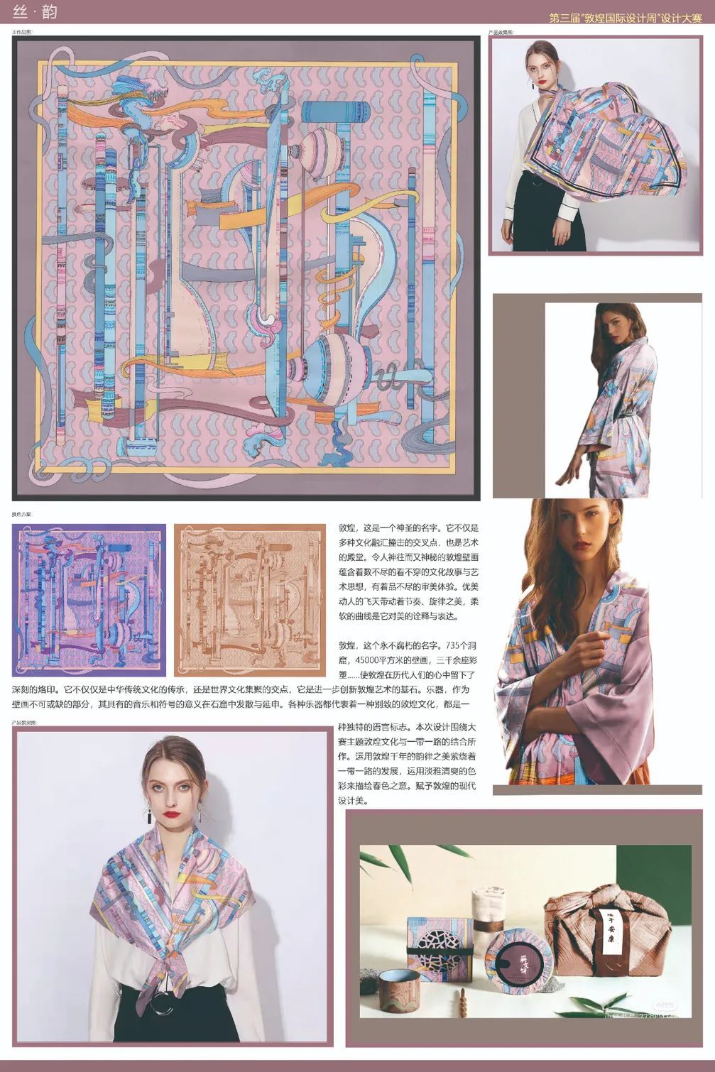 敦煌,这是一个神圣的名字。它不仅是多种文化融汇撞击的交叉点,也是艺术的殿堂。令人神往而又神秘的敦煌壁画蕴含着数不尽的看不穿的文化故事与艺术思想,有着品不尽的审美体验。优美动人的飞天带动着节奏、旋律之美,柔软的曲线是它对美的诠释与表达。敦煌,这个永不腐朽的名字。735个洞窟,45000平方米的壁画,三千余座彩塑......使敦煌在历代人们的心中留下了深刻的烙印。它不仅仅是中华传统文化的传承,还是世界文化集聚的交点,它是进一步创新敦煌艺术的基石。乐器,作为壁画不可或缺的部分,其具有的音乐和符号的意义在石窟中发散与延伸。各种乐器都代表着一种别致的敦煌文化,都是独特的语言标志。本次设计围绕大赛主题敦煌文化与“一带一路”的结合所作。运用敦煌千年的韵律之美萦绕着“一带一路”的发展,运用淡雅清爽的色彩来描绘春色之意。赋予敦煌的现代设计美。