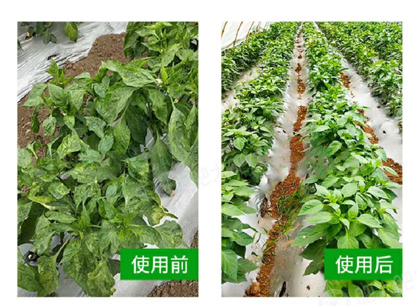 如果你的作物比如,辣椒、黄瓜、生菜等有黄叶的问题,如果你的作物在生长过程中经常容易出现各种各样的病害问题,那你一定要试一试肥二。使用之后效果一定让你很惊喜。像应用在辣椒、黄瓜、茄子上发生叶片发黄、卷曲的情况,在使用肥二5天后植株就恢复正常生长,如果长期使用,叶片浓绿完全不会出现早衰的现象;番茄使用后叶片挺拔向上,带病叶片全部转绿,植株健壮生长无早衰,大葱使用后,没出现之前干尖黄叶的现象,使用后颜色靓丽,品质非常的好。