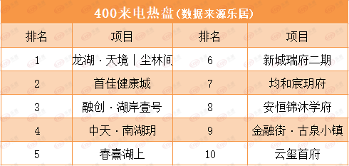 截至9月13日9时编辑截稿,据乐居本站的监测,上周(2021年9月6日-2021年9月12日)400来电环比跌幅14.2%。前十楼盘分别为:龙湖·天境|尘林间、首佳健康城、融创·湖岸壹号、中天·南湖玥、春熹湖上、新城瑞府二期、均和宸玥府、安恒锦沐学府、金融街·古泉小镇、云玺首府。其中新城瑞府二期从上上周的第十名提升至了第六名,保持在前十之列。